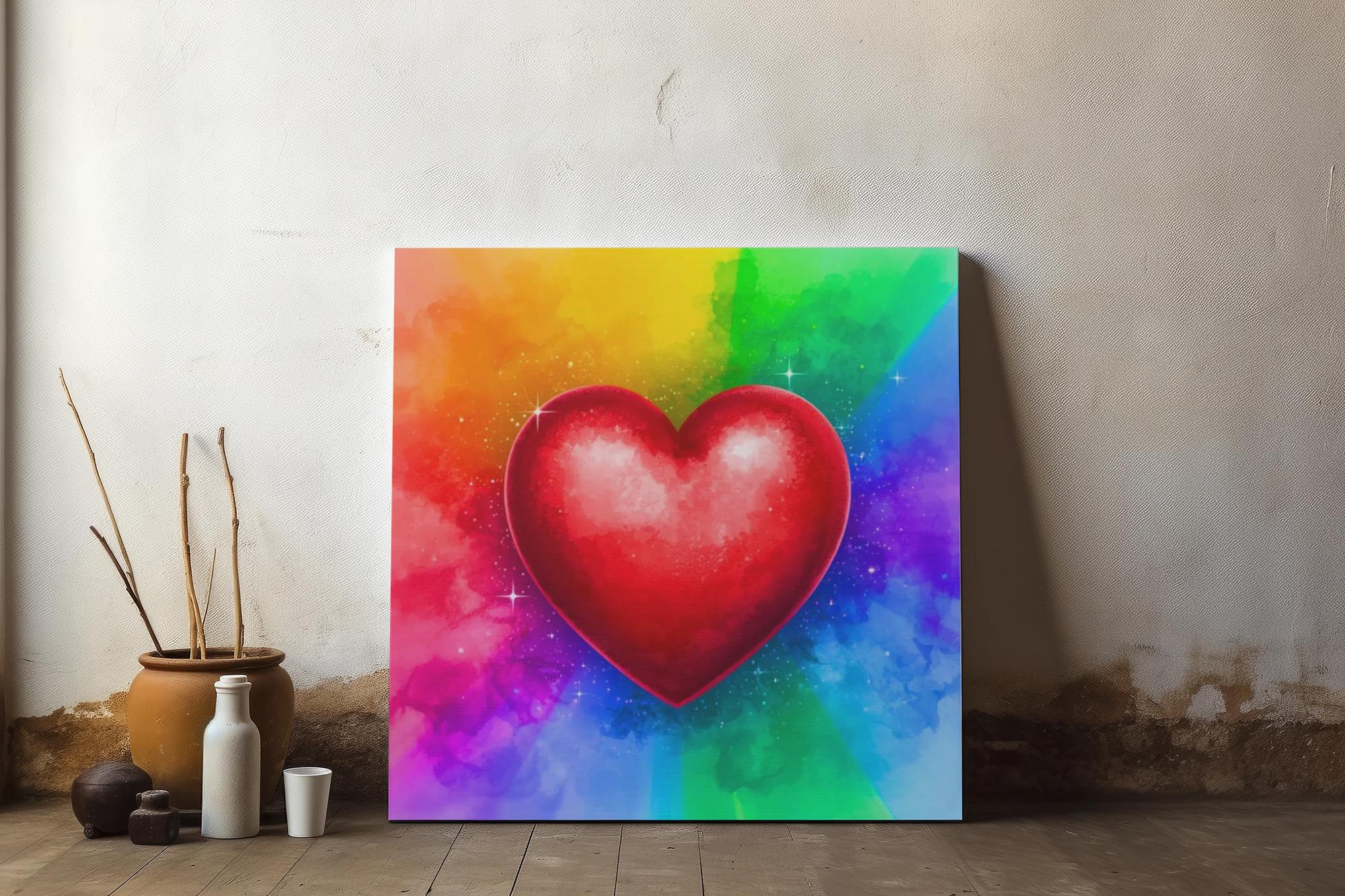 Add a splash of love to your space with this vibrant canvas art. This piece radiates joy and sentiment, perfect for brightening any room. Ideal for those who appreciate playful, eye-catching designs, it suits a variety of decor styles—from whimsical to modern. Perfect as a gift for friends or loved ones on special occasions like Pride Day, Valentine's Day, anniversaries, or birthdays, this artwork can also create a warm atmosphere during festive gatherings, bringing people together through its cheerful imagery. Whether you’re decorating a nursery, living room, or office, this canvas will uplift your environment and charm your guests.