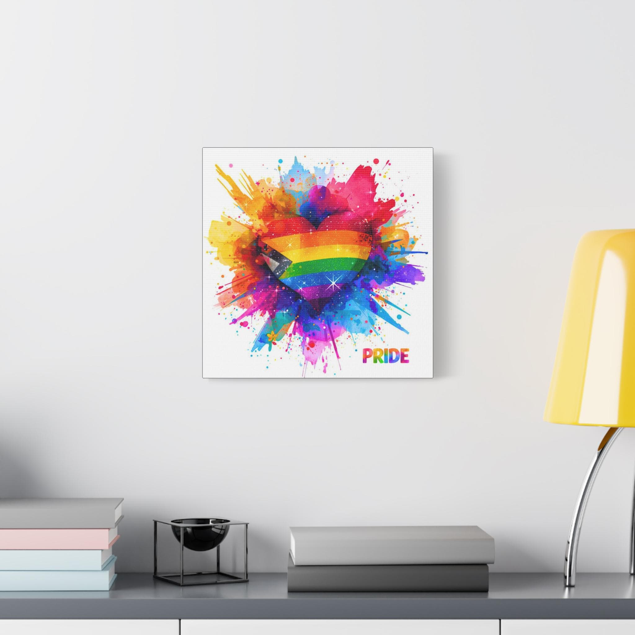 Transform your space with this vibrant and eye-catching Matte Canvas. Featuring a burst of a colorful LGBTQ+ Pride heart, this artwork brings a sense of joy and warmth to any room. Perfect for adding a playful touch to your living area, bedroom, or office, it inspires love and positivity each day. This canvas artwork is great for anyone who appreciates fun and whimsical decor while inspiring equality, making it an ideal gift for anyone!! Celebrate special moments and occasions like Pride Day, Valentine's Day, anniversaries, or simply the joy of everyday life with a piece that radiates happiness!
