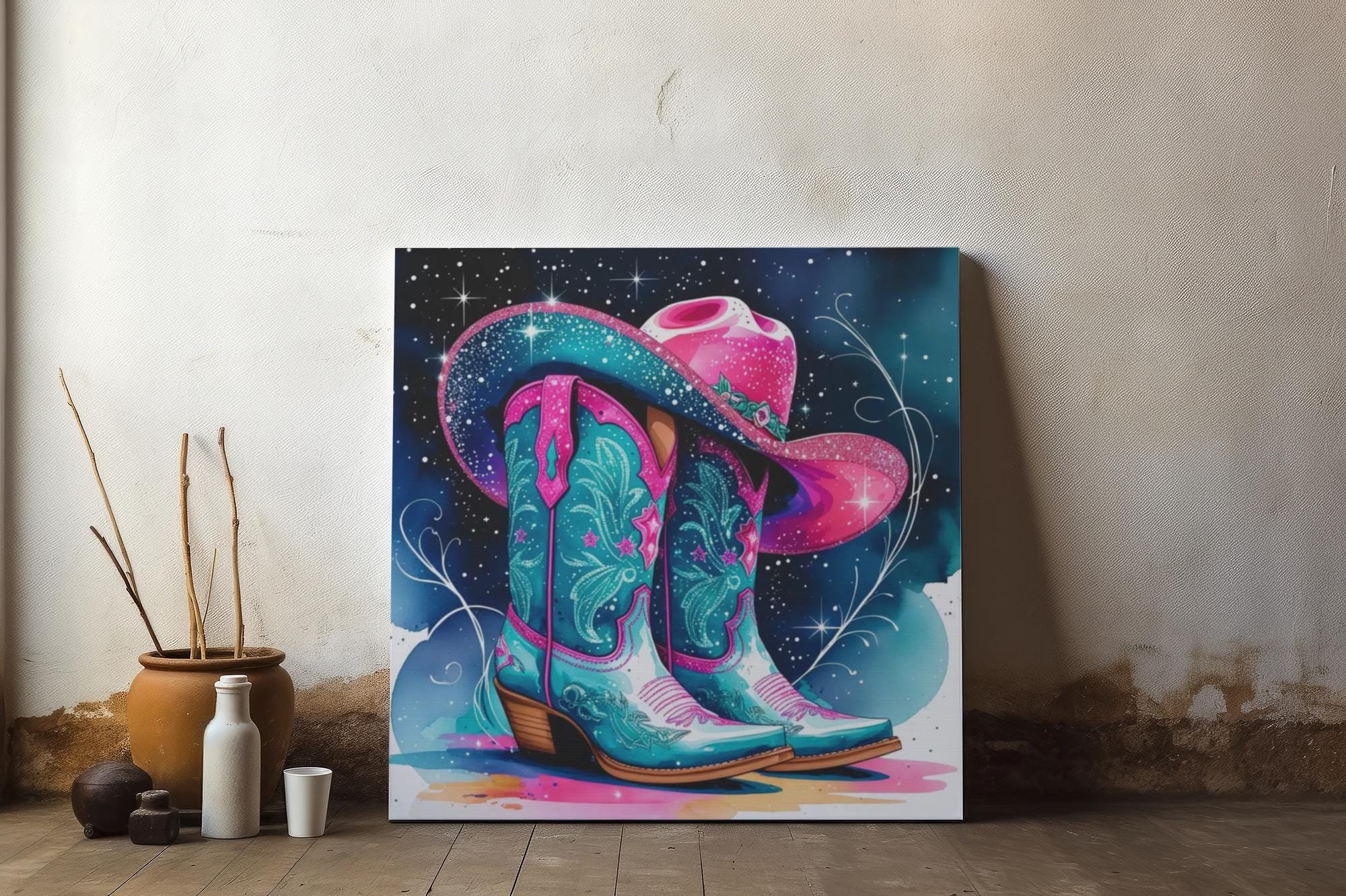 Elevate your space with this stunning Matte Canvas! Featuring vibrant colors and a unique design of stylish cowgirl boots and a fashionable hat, this canvas wall art brings a playful yet chic vibe to any room. Perfect for adding a touch of country charm to your home, it resonates with anyone who appreciates rustic decor and artistic flair. Ideal for decorating living spaces, bedrooms, or creative studios, this canvas also makes a thoughtful gift for special occasions like housewarming parties, birthdays, or holidays. Celebrate the spirit of western culture and bring a touch of excitement to your surroundings!