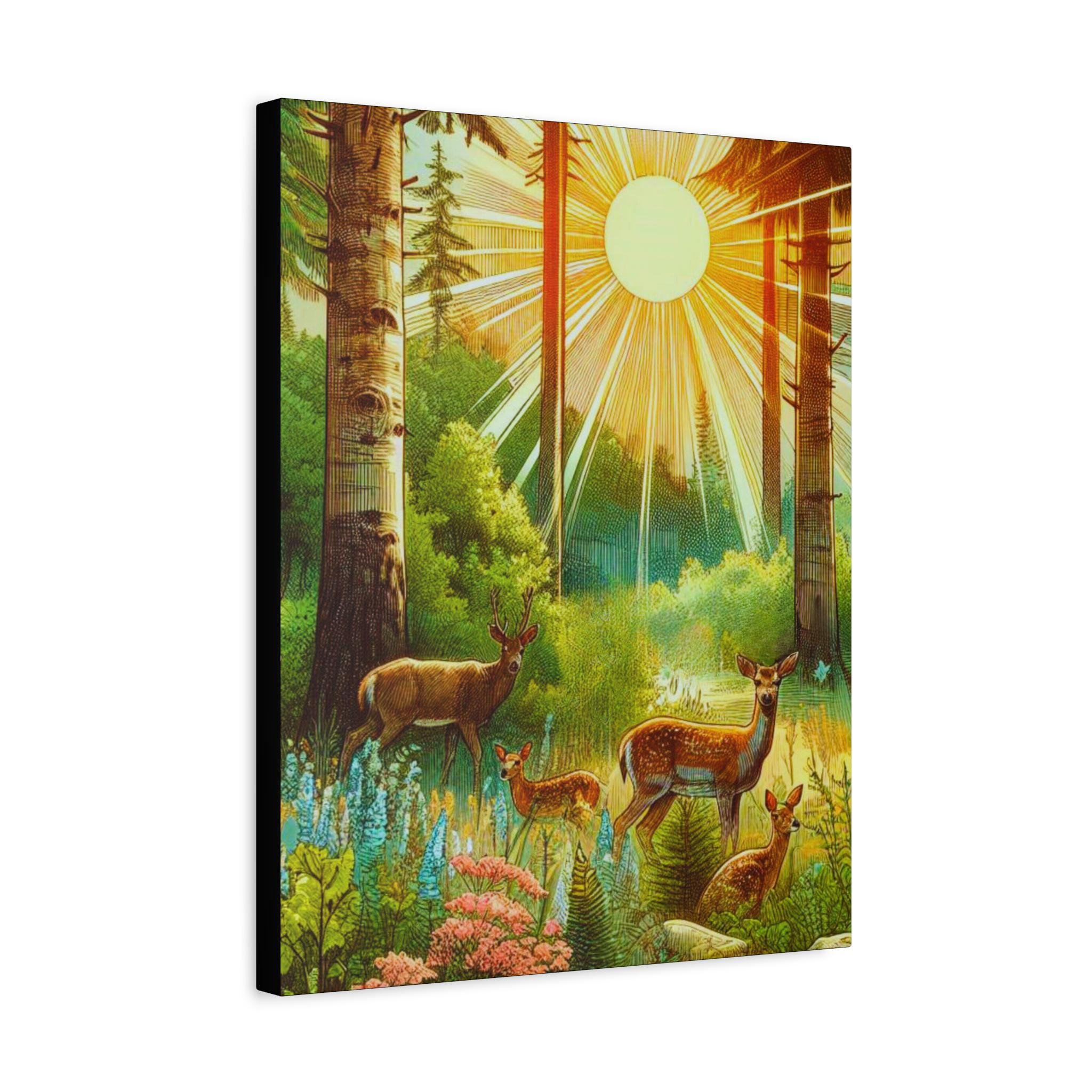 Enhance your living space with this exquisite Canvas Print. Featuring a stunning landscape of deer in a sunlit forest, this piece brings a warm and inviting atmosphere to any room. Perfect for nature lovers and those seeking a touch of tranquility in their home. Its informative yet peaceful vibe makes it an ideal addition for seasonal celebrations or holidays like Thanksgiving and Earth Day, when you want to appreciate the beauty of nature with family and friends. This canvas not only decorates your walls but also sparks conversations and appreciation for the natural world. It’s perfect for anyone looking to add elegance and serenity to their décor, whether in a cozy living room or a serene bedroom.