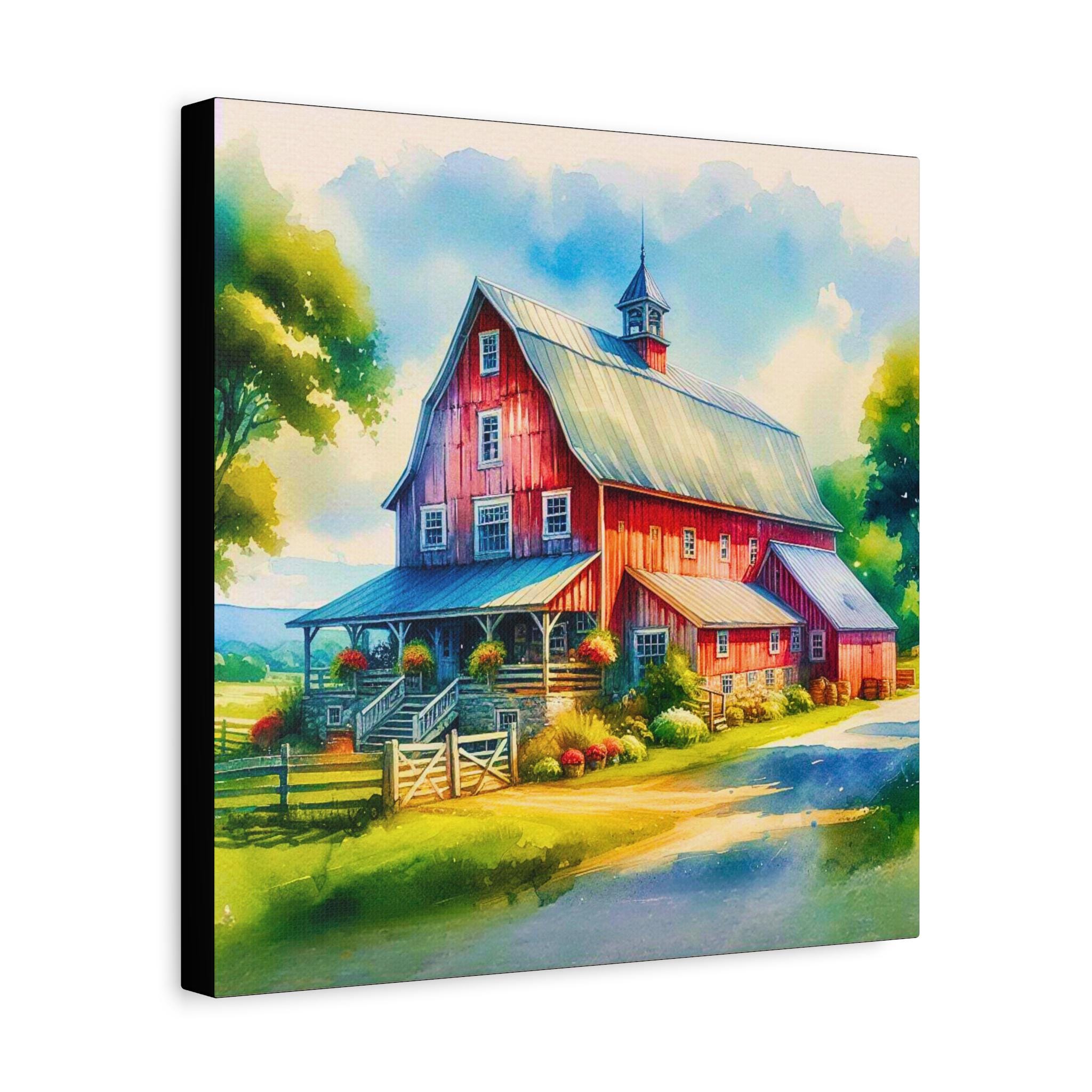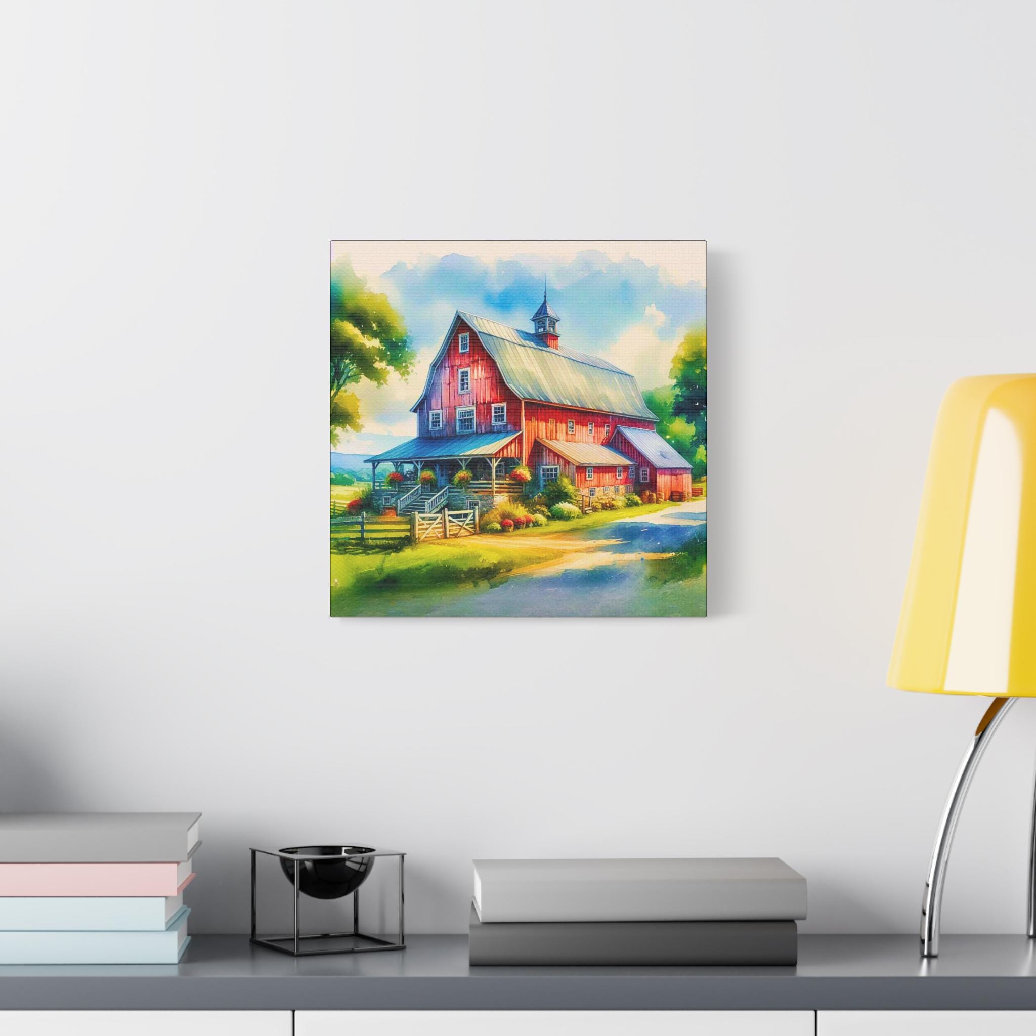 Country Barn Matte Canvas Wall Artwork, Country Landscape Home Decor, 14x14