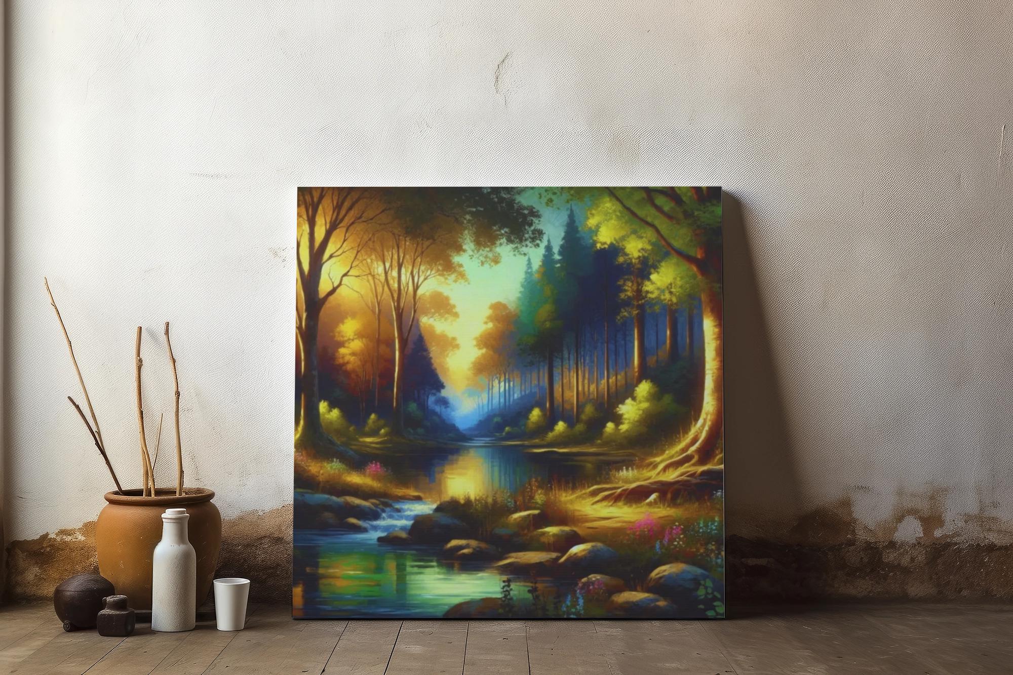 Transform your space with this stunning Matte Canvas, Stretched, 1.25". With its mesmerizing forest scene and realistic colors, this piece brings a calm and serene atmosphere to any room. Perfect for creating a relaxing environment in your home or workspace, this canvas will resonate with nature lovers and art enthusiasts alike. Its versatility makes it an ideal gift for housewarmings, weddings, and holidays like Earth Day or Arbor Day. Brighten up your walls and add a touch of tranquility to your life with this enchanting piece that draws the eye and sparks conversation.