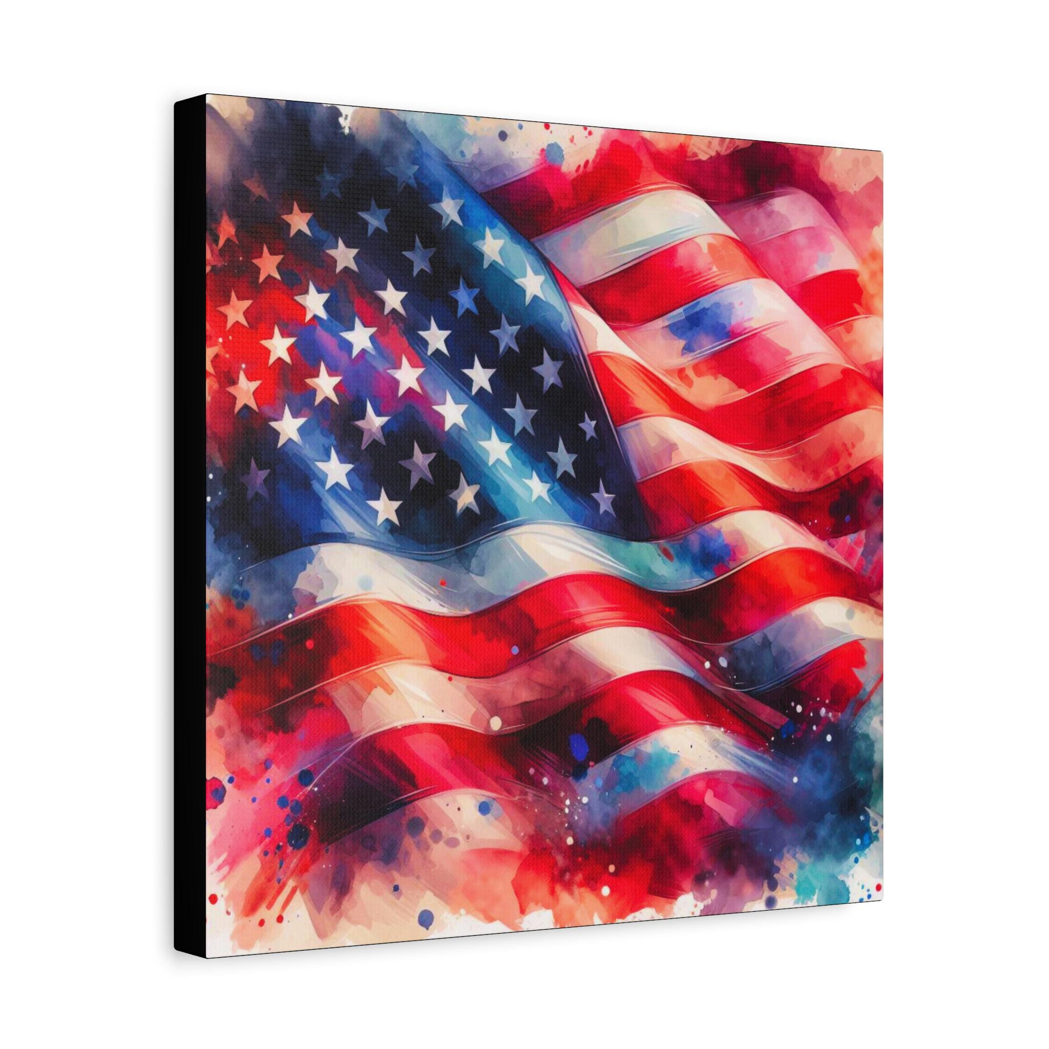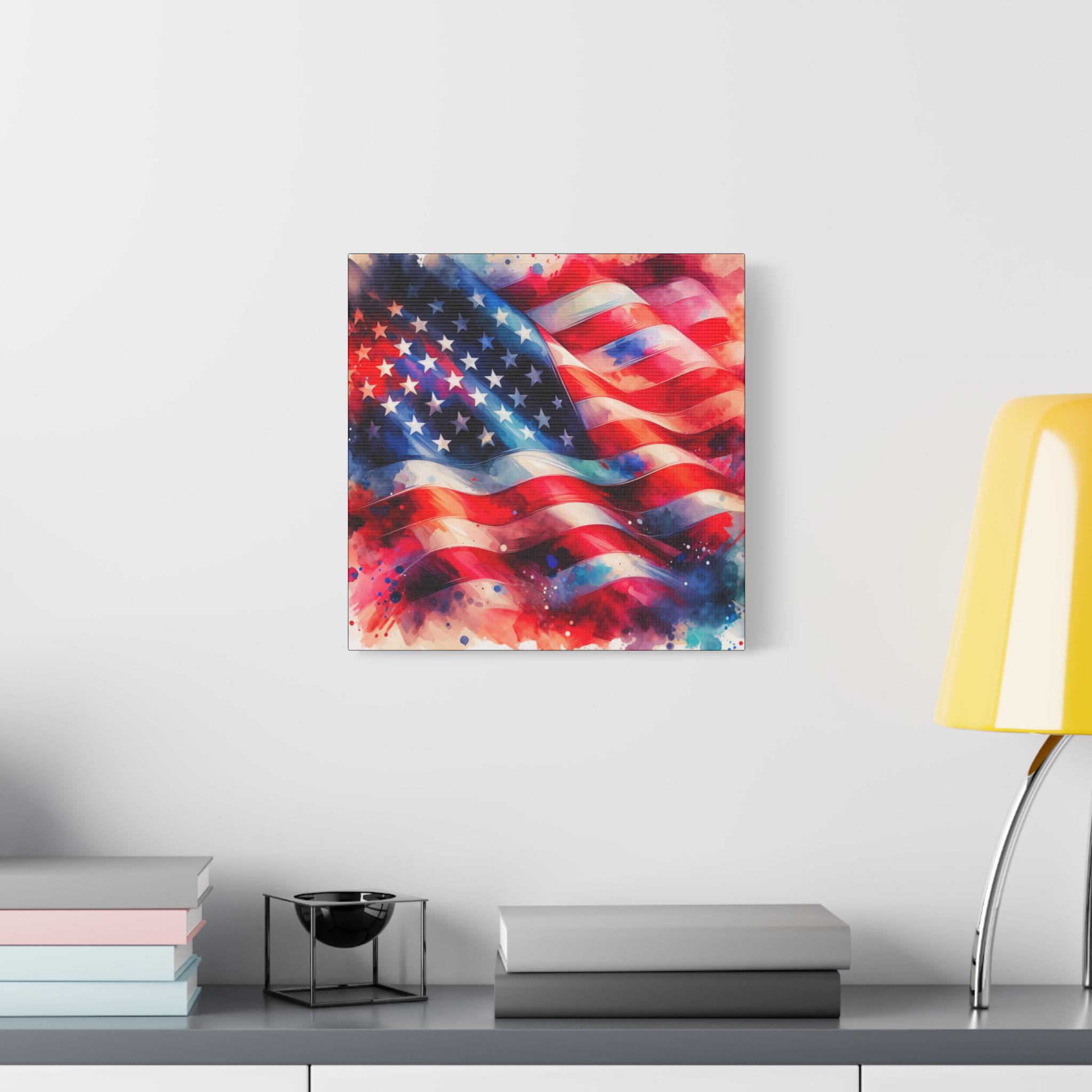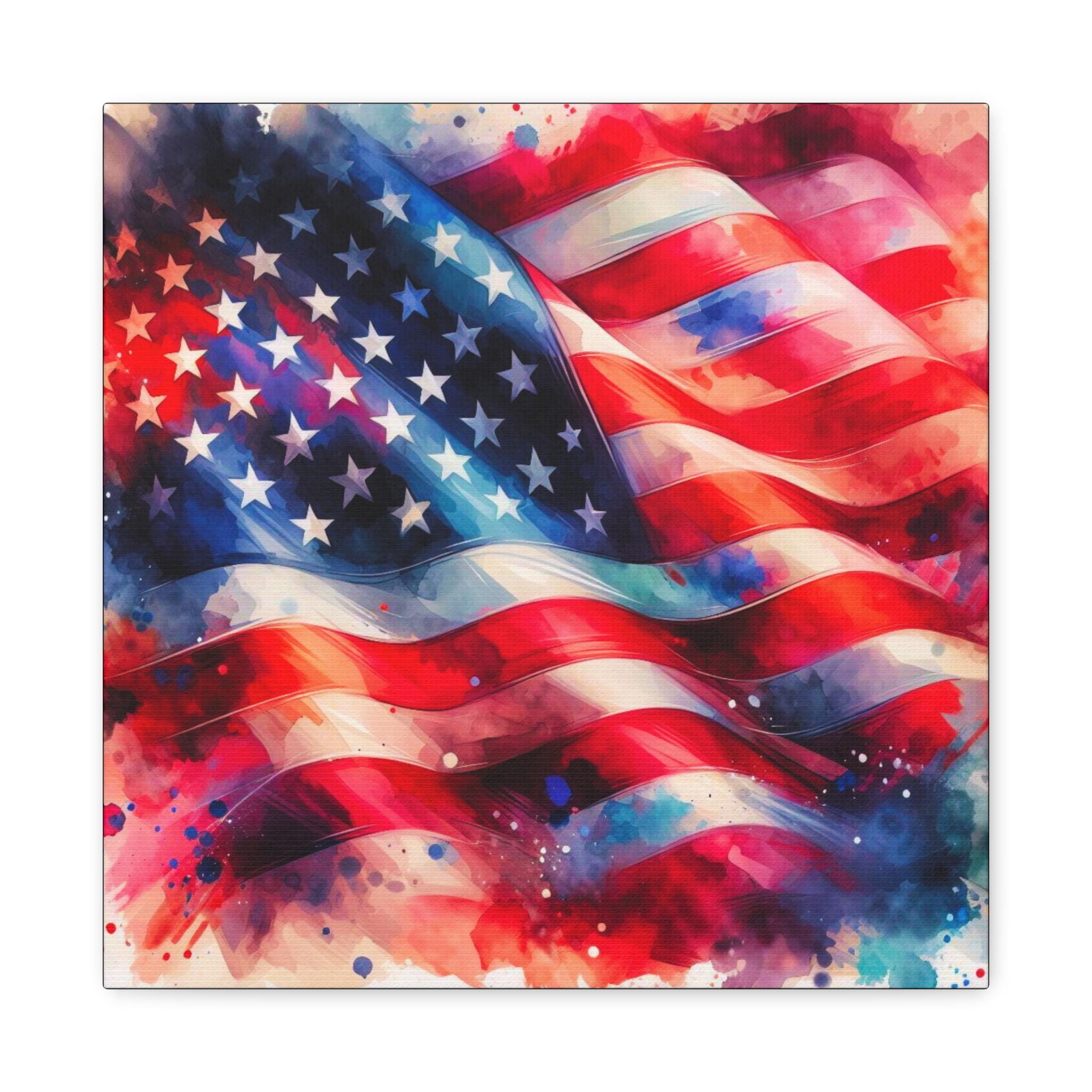 Patriotic American Flag Canvas Art: 4th of July Wall Decor, Watercolor Style