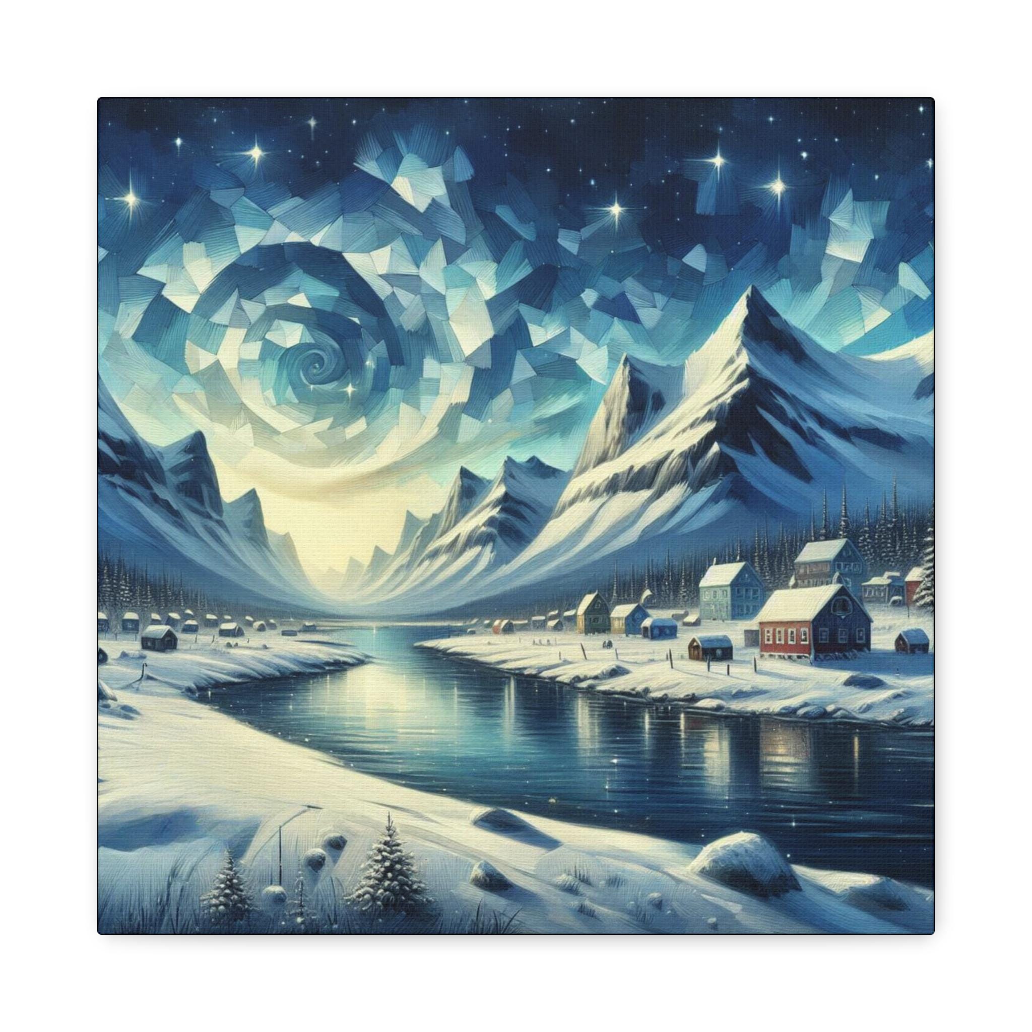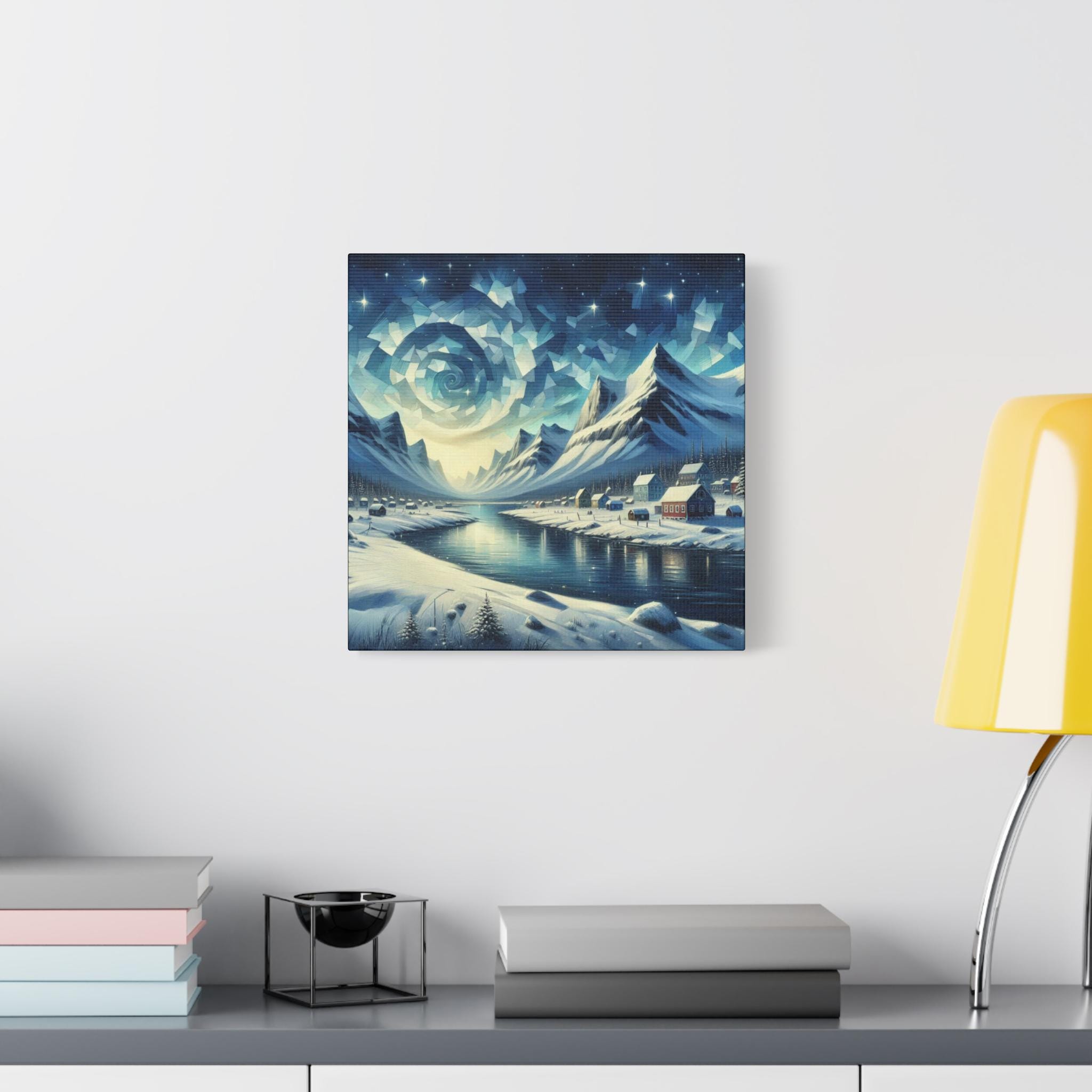 Abstract Mountain Landscape Canvas Art: Crisp Alaskan Sky, Cozy Wall Decor