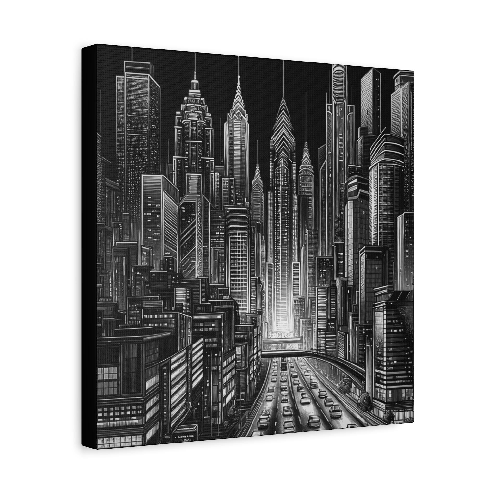 Urban Skyline Matte Canvas Wall Art, Black and White Cityscape Decor, Modern Home Art, Urban Aesthetic, Office Decor, Gift for City Lovers