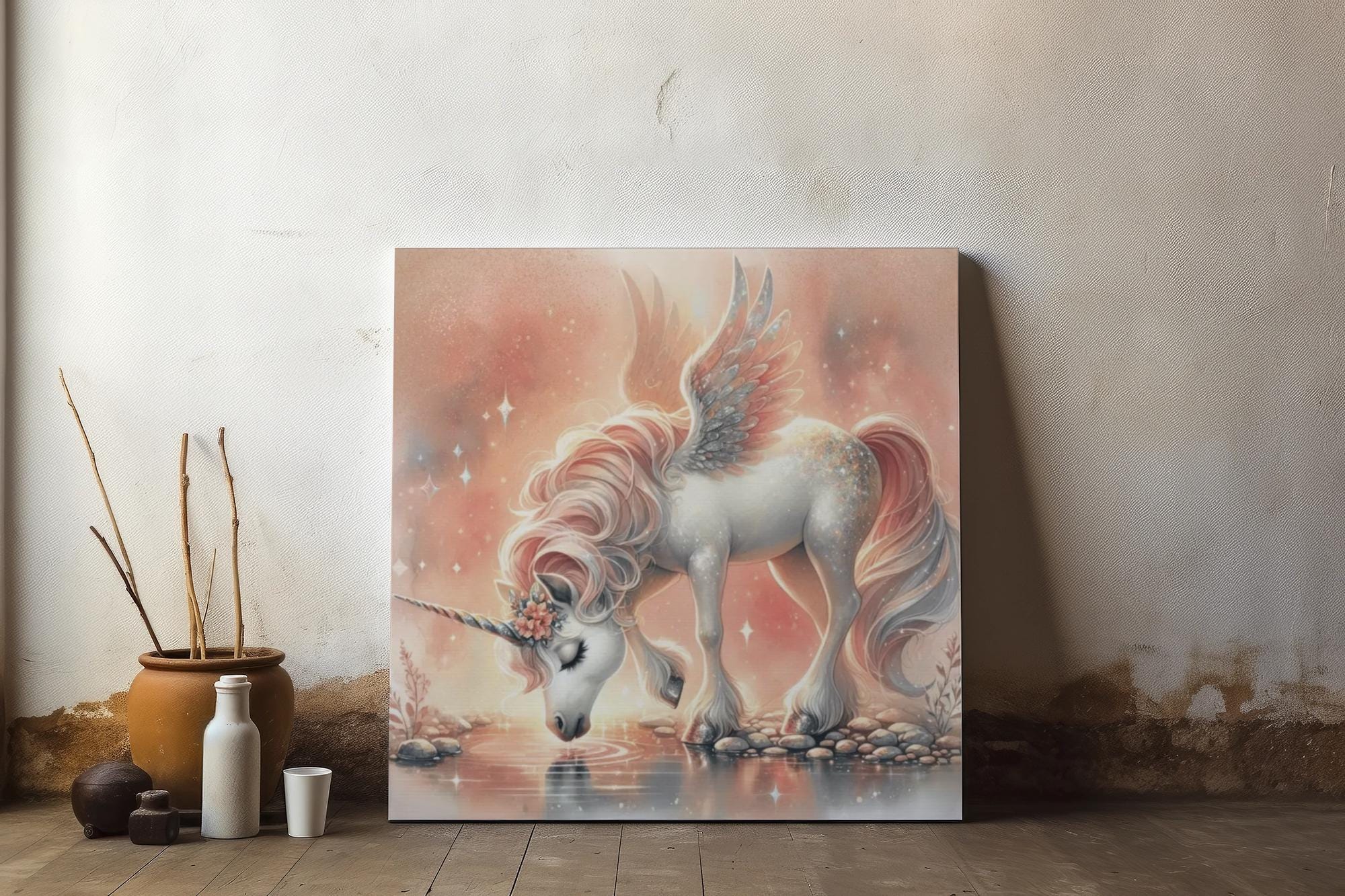 Ideal for families, children, or anyone who cherishes fantasy and colorful artwork, this canvas adds a playful touch to birthdays, baby showers, or festive celebrations. It also makes a thoughtful gift for unicorn enthusiasts or anyone seeking a splash of charm in their home. Let this canvas inspire your imagination and bring joy to your daily life!