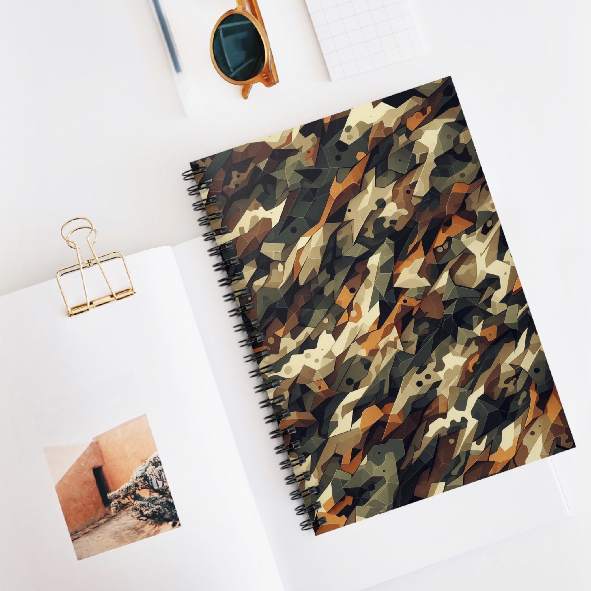 Elevate your writing experience with this stylish Spiral Notebook. Perfect for students, professionals, or anyone who appreciates the art of writing, this notebook offers a blend of functionality and design. The unique camo pattern brings a fresh, contemporary vibe, making it an eye-catching companion for note-taking, brainstorming, or journaling. Its compact size (6" x 8") makes it easy to toss in a bag or purse, ensuring you'll always be ready to capture ideas on the go. Ideal for back-to-school season, work meetings, or as a thoughtful gift for birthdays, holidays, and special occasions. Whether you're jotting down notes in class or sketching creative ideas, this notebook is your go-to choice for expressing your thoughts.