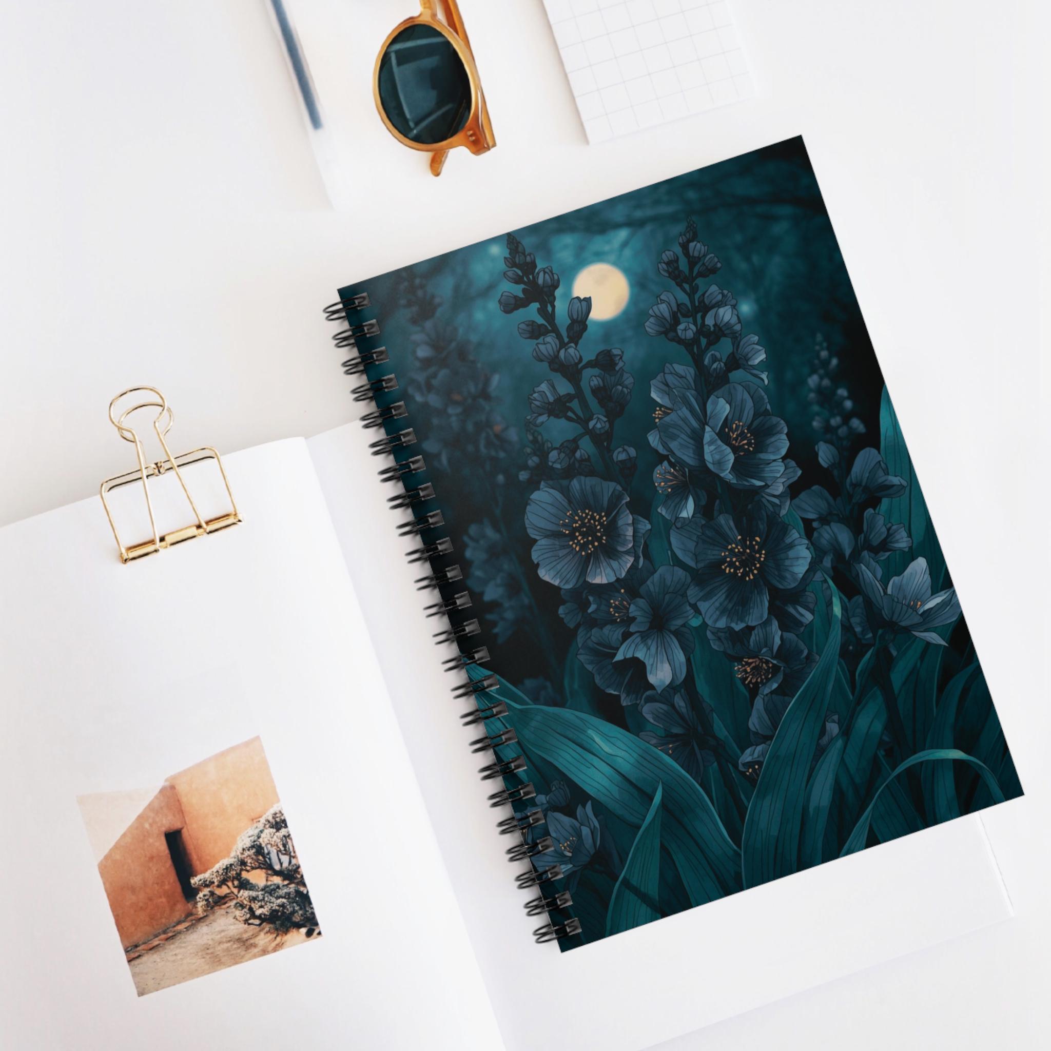 Juneberry Floral Notebook: Midnight Spring, Ruled Pages