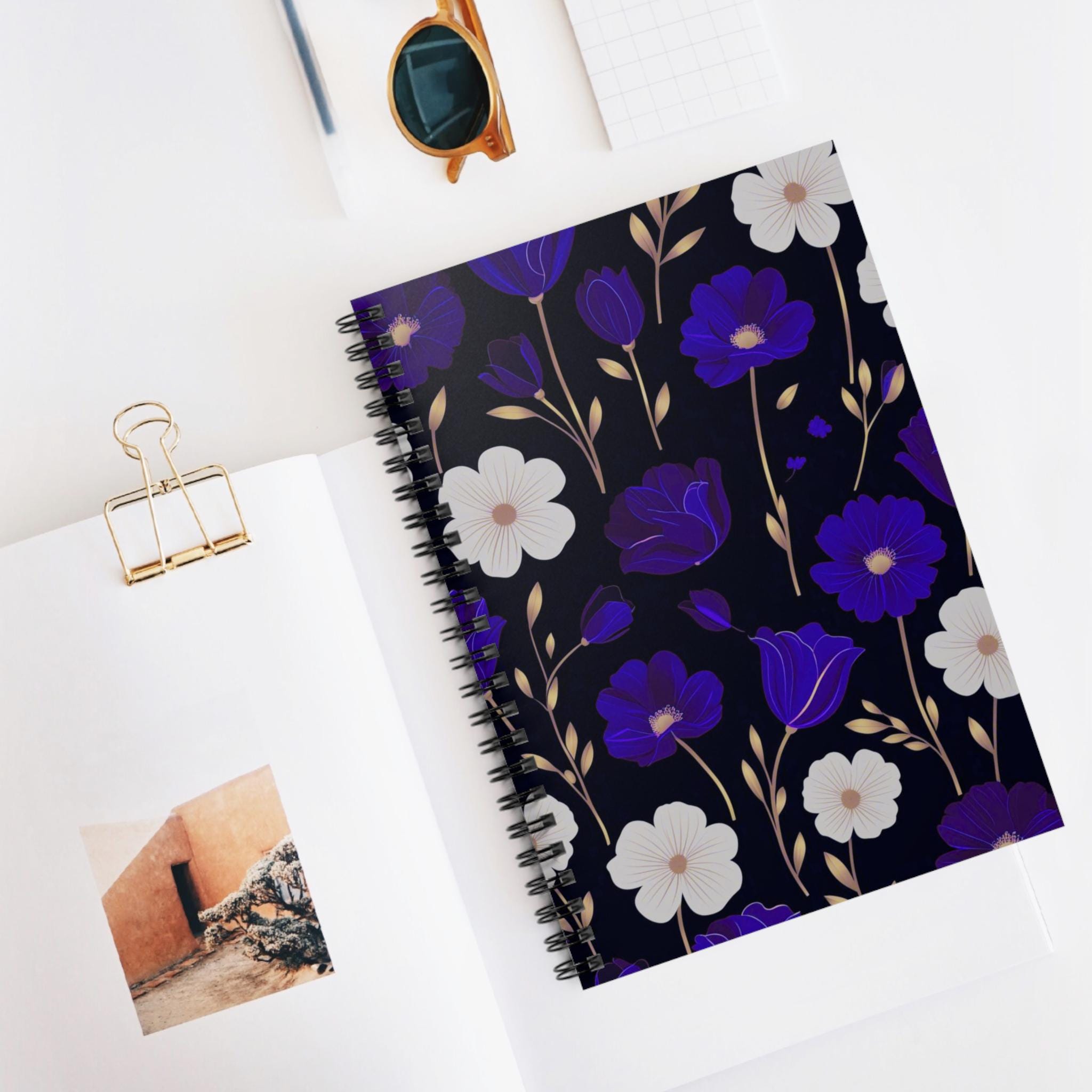 Midnight Wildflowers Spiral Notebook: Elegant Lined Journal