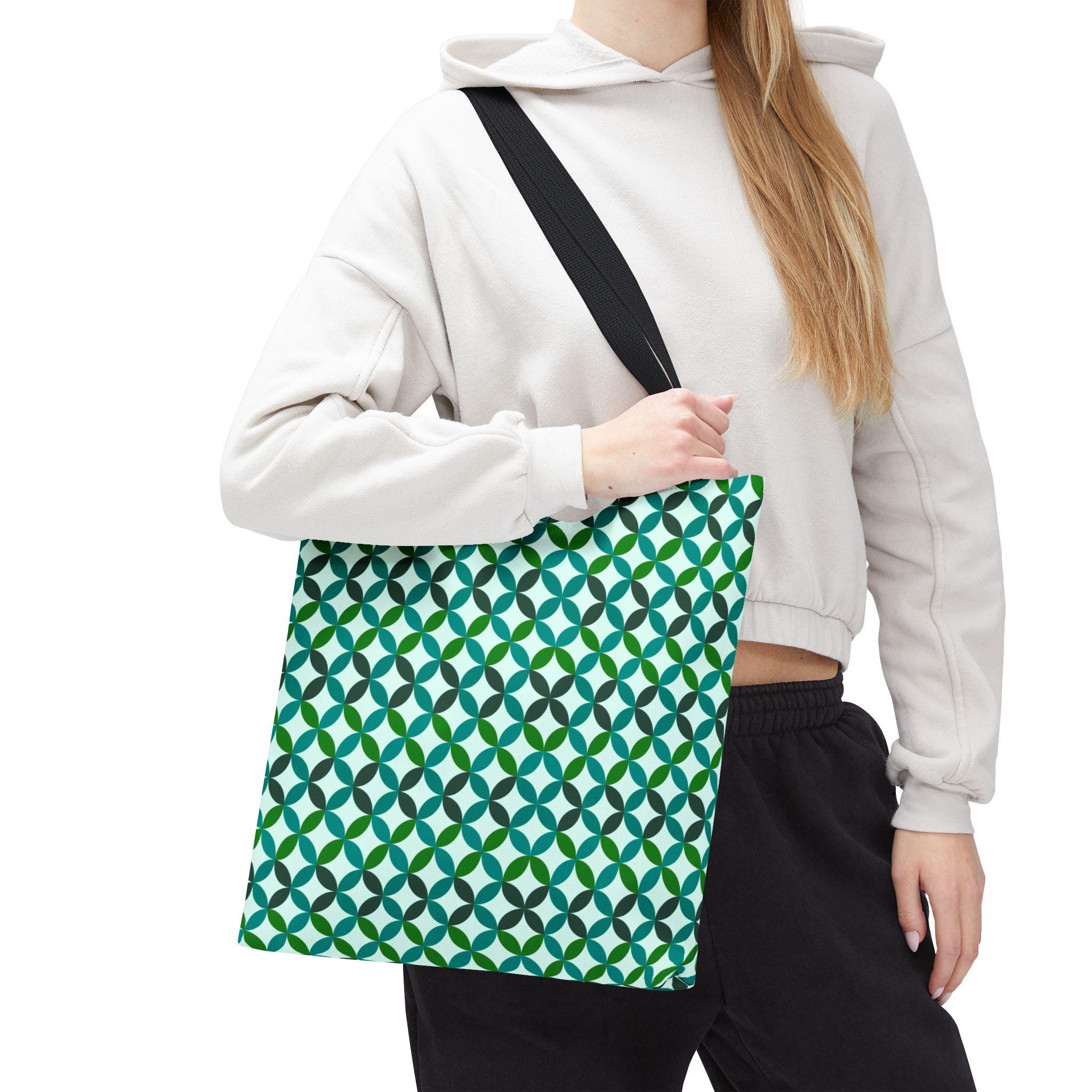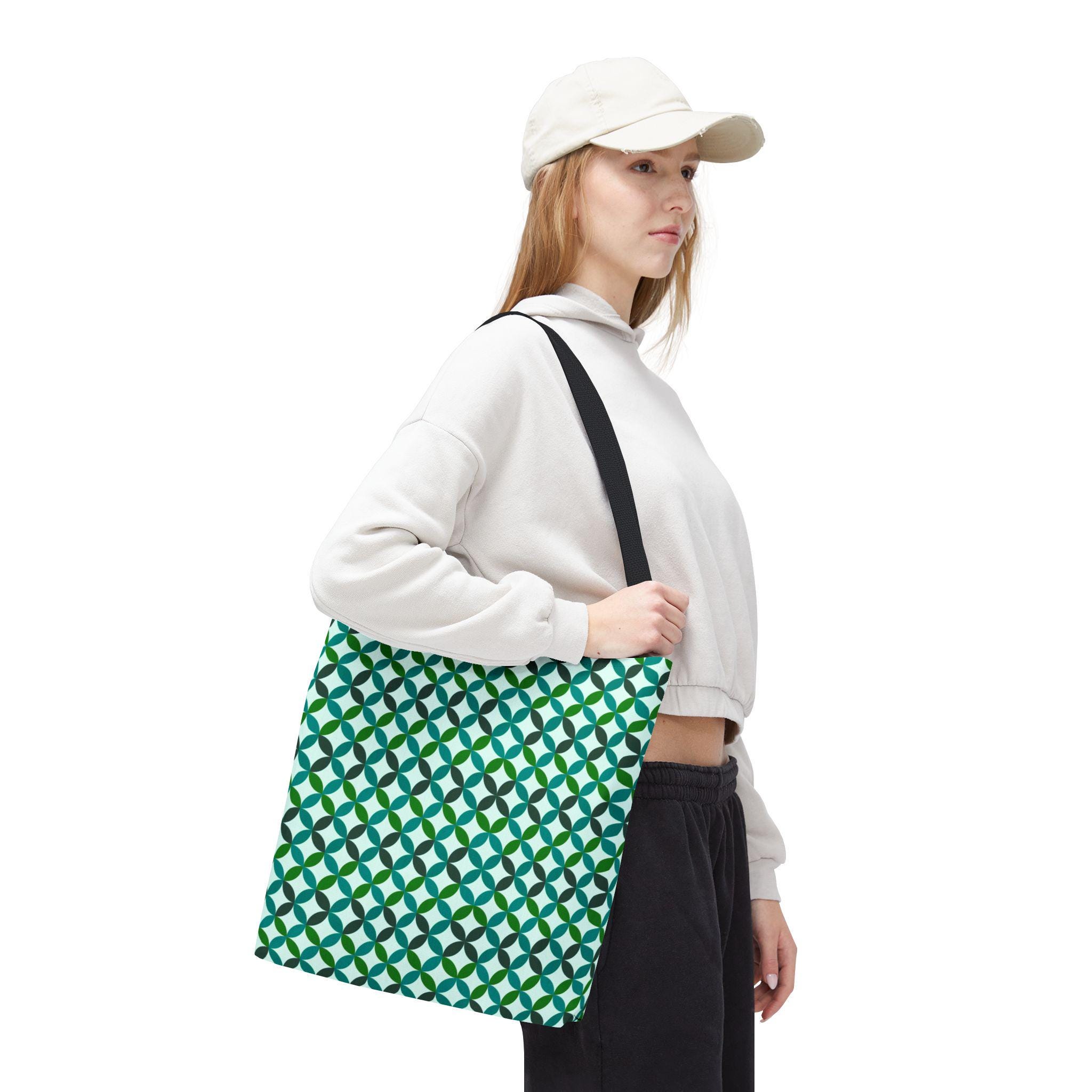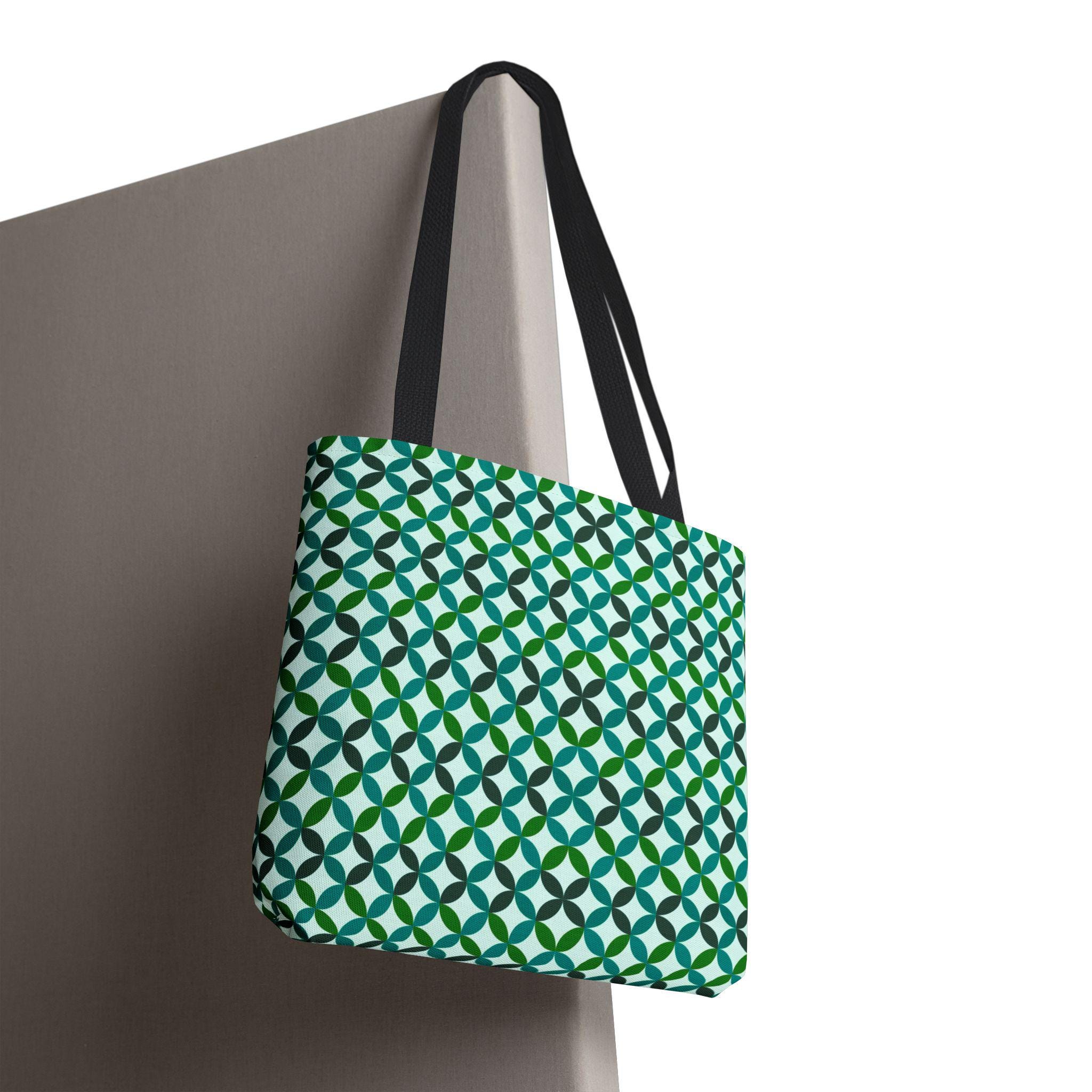 Geometric Green Diamonds Tote Bag: Eco-Friendly Polyester Shopping Bag