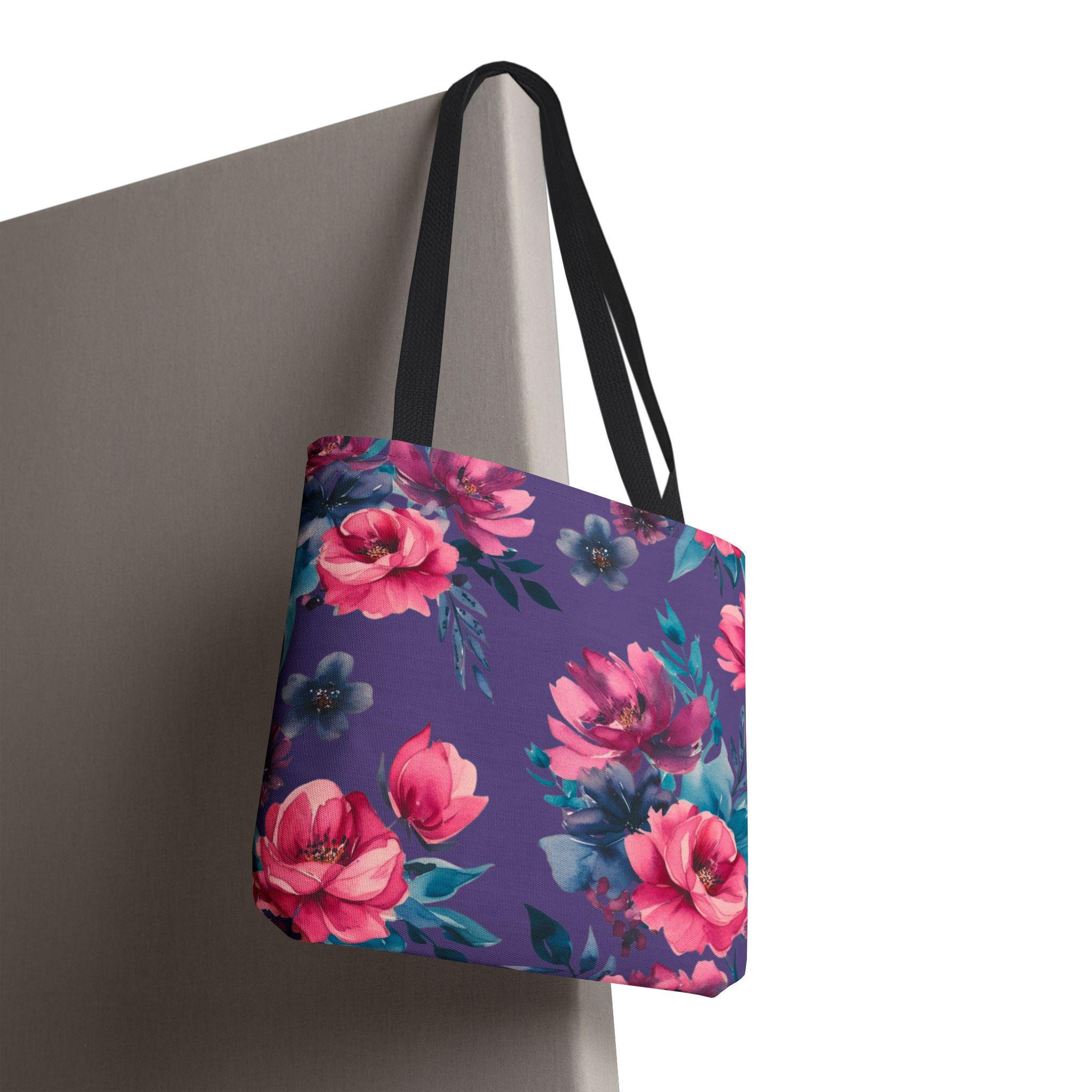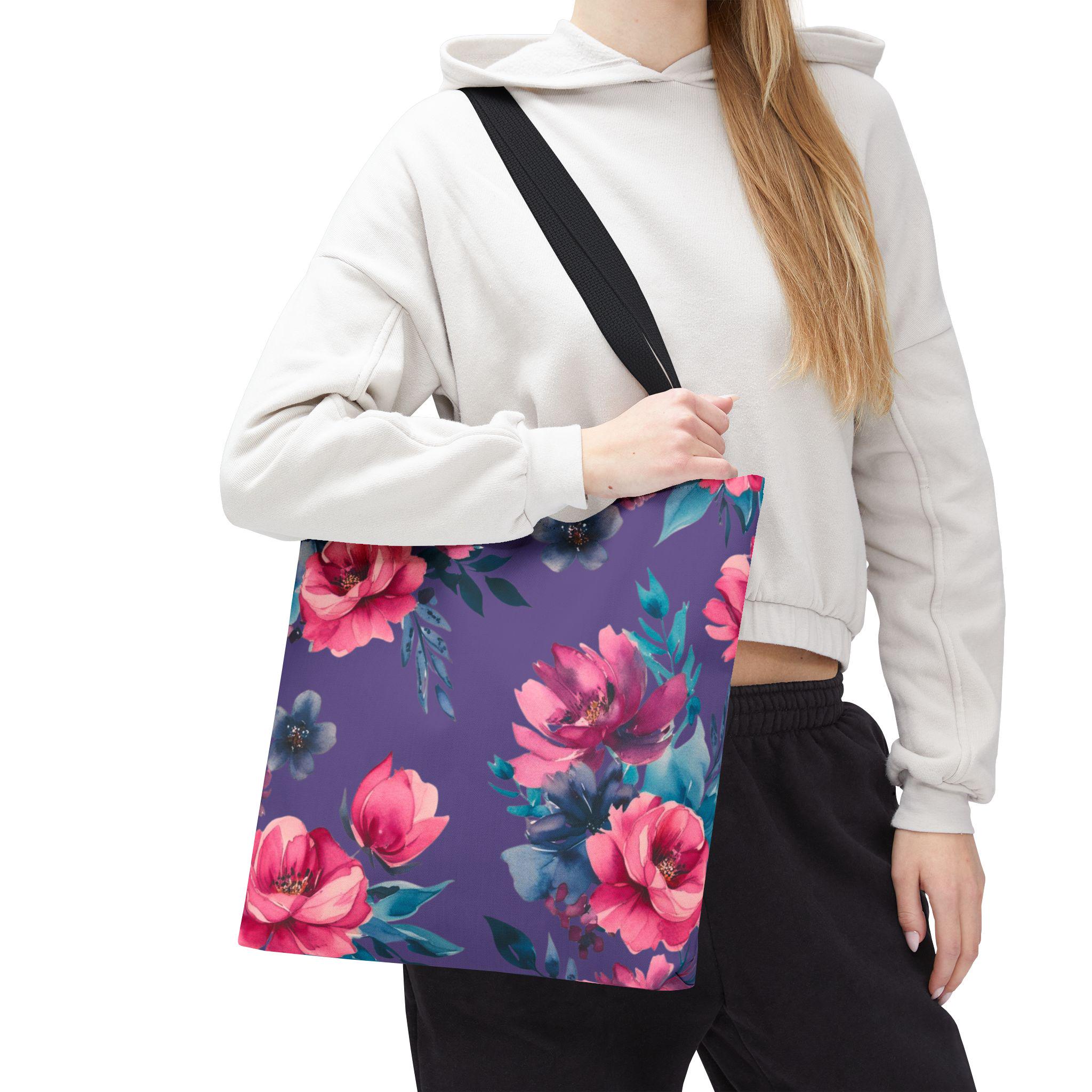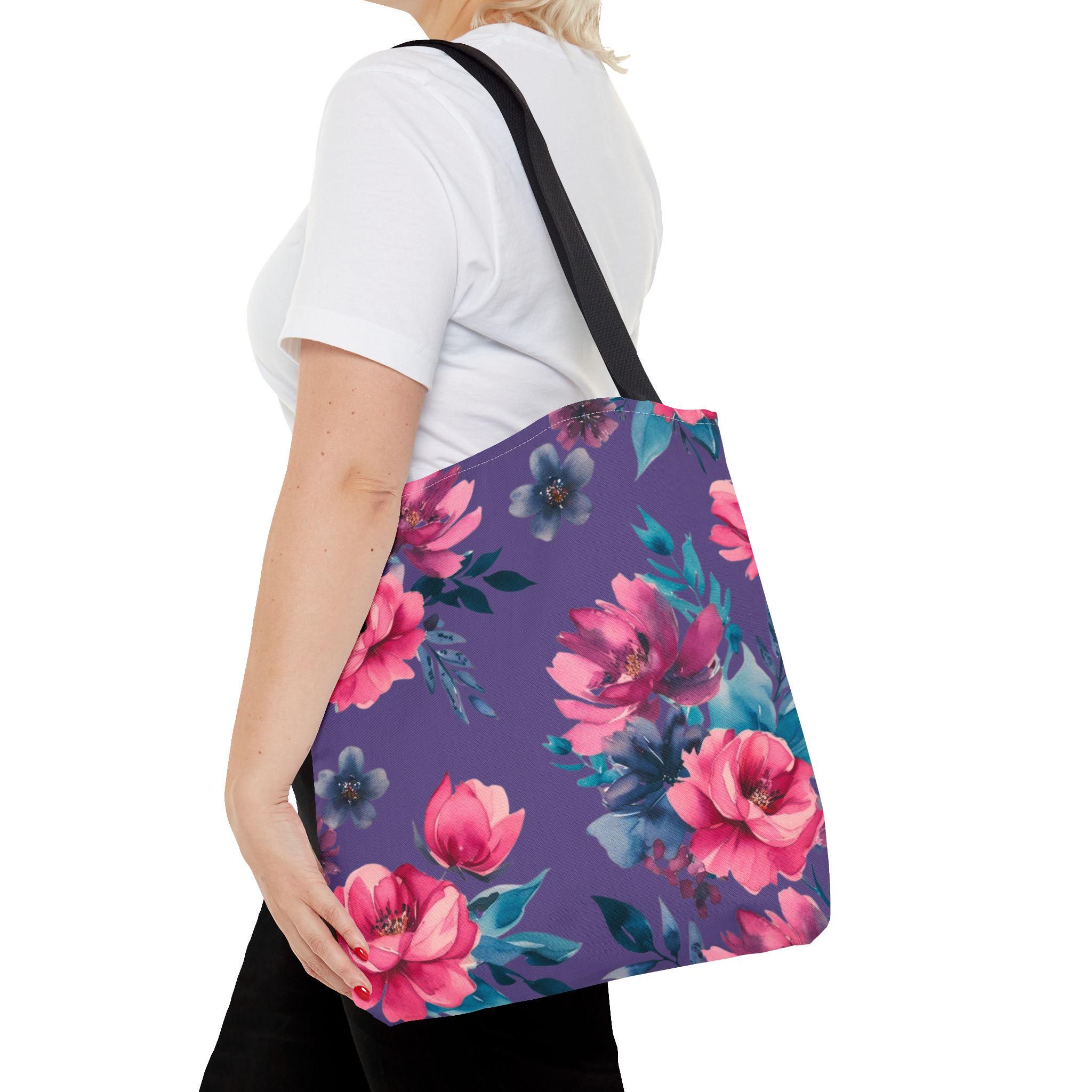 Introducing a vibrant tote bag that brings a touch of nature's beauty to your everyday life. This eye-catching bag features stunning floral patterns set against a deep purple background, adding a playful yet elegant vibe to your outings. Perfect for farmers' markets, beach days, or casual outings, it combines style and functionality effortlessly. Ideal for fashion enthusiasts, environmentally conscious shoppers, or anyone needing a reliable bag to carry their essentials. Celebrate occasions like Mother's Day, birthdays, or just treat yourself to a functional accessory that suits any season and enhances your look with flair.