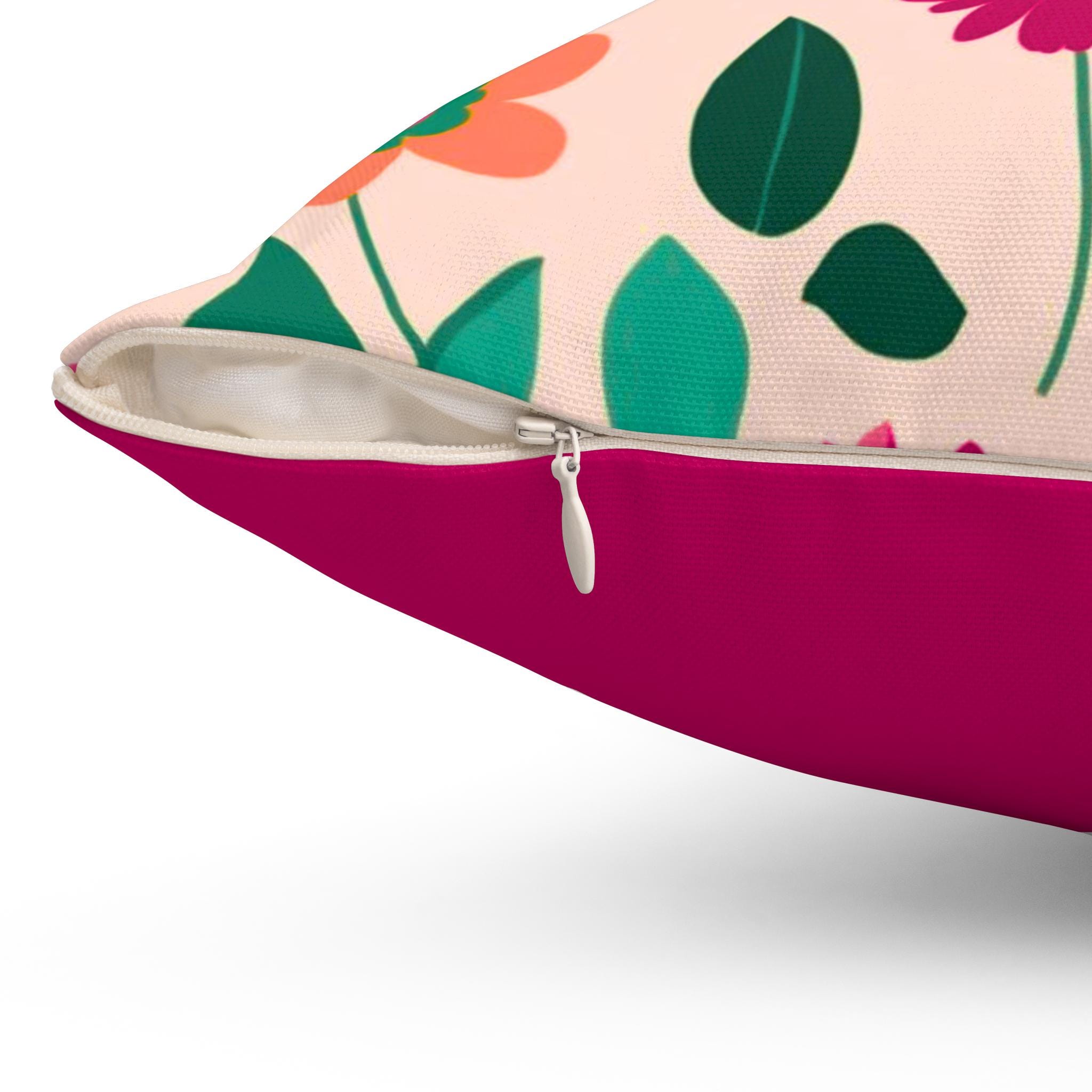 Add a touch of charm and comfort to your space with this vibrant Spun Polyester Square Pillow. Featuring a delightful floral design on one side and a rich pink color on the reverse, it effortlessly complements any room decor. This pillow exudes a cheerful vibe, perfect for brightening up your living area or bedroom. It's an ideal home accessory for floral lovers and those looking to add a pop of color to their space. Great for housewarmings, birthdays, or simply as a thoughtful gift during any festive season, this pillow invites warmth and coziness into your everyday life.
