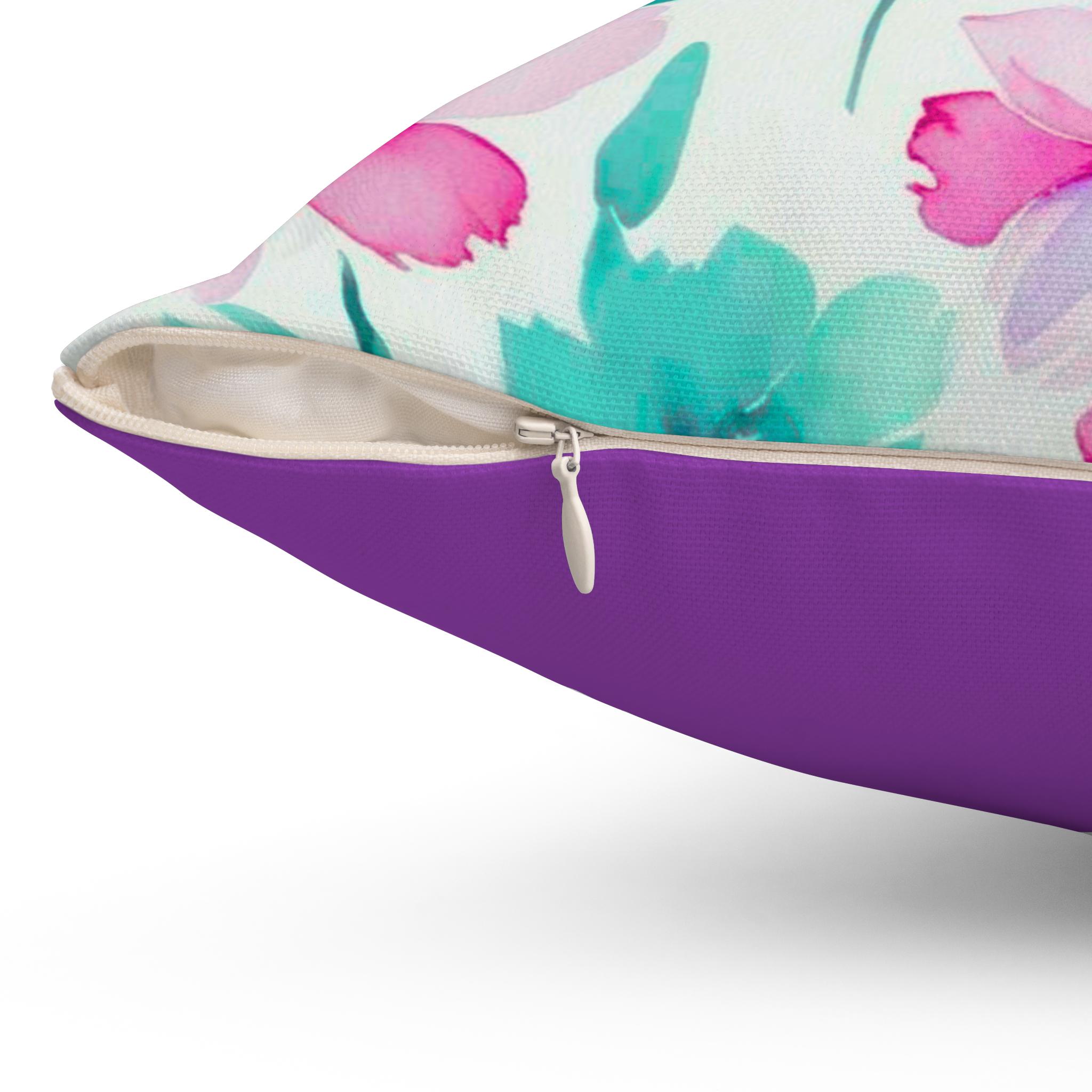 Floral Tempera Square Pillow: Boho Purple Accent Cushion