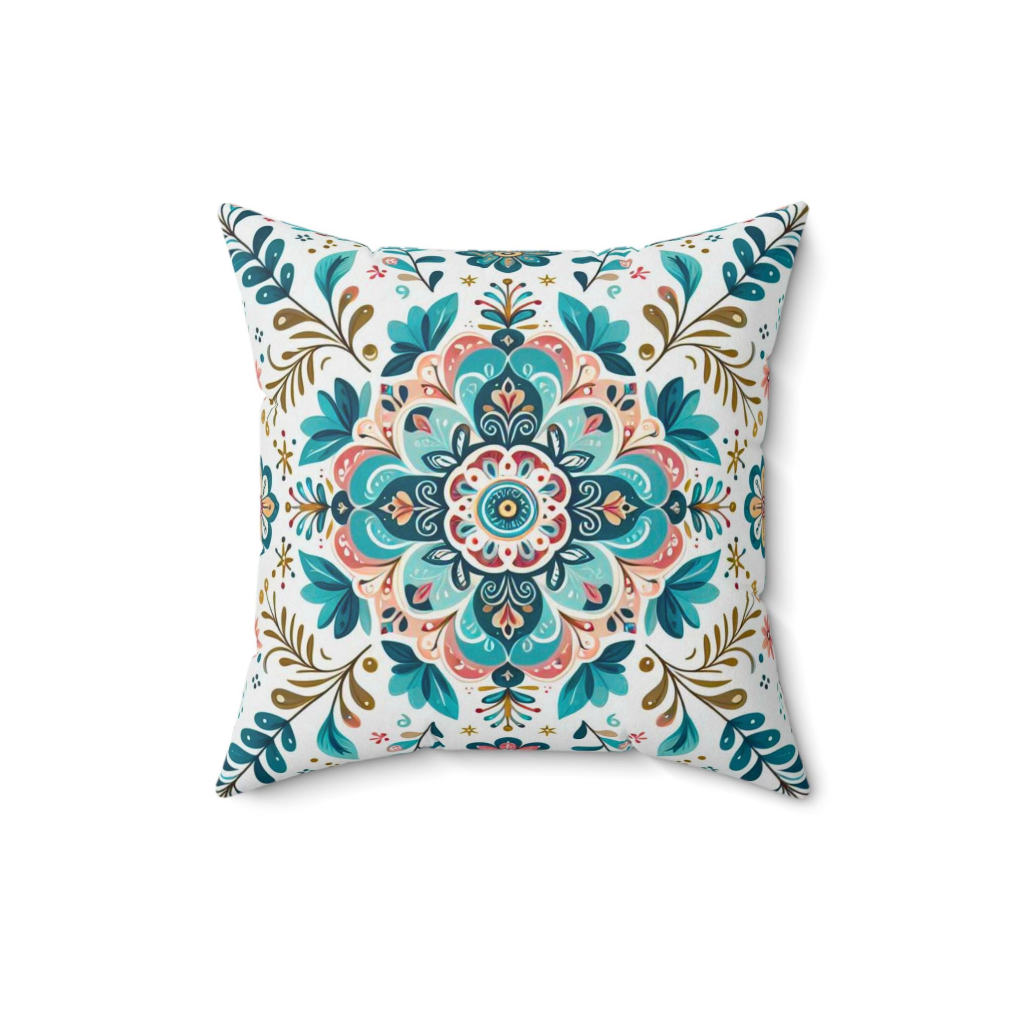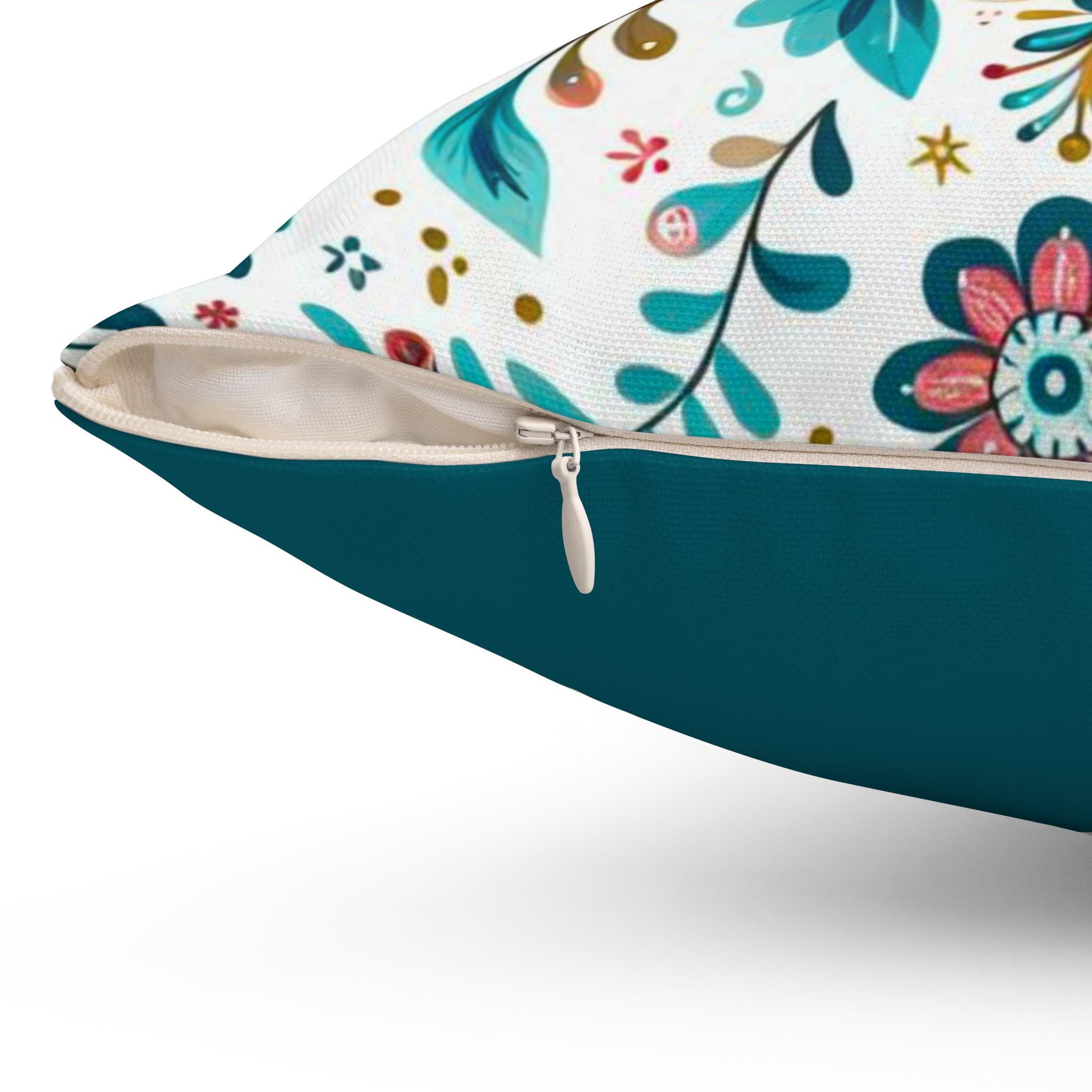 Bohemian Floral Square Pillow: Spun Polyester Couch Cushion