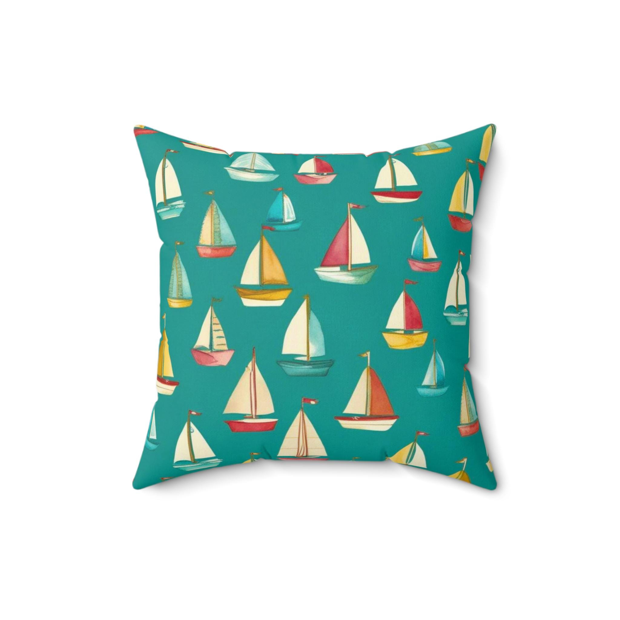 Transform your living space with this vibrant square pillow, featuring an eye-catching sailboat pattern on one side. Its delightful design evokes a sense of coastal charm and tranquility, making it a perfect addition to your home decor. This pillow effortlessly blends with any interior style, adding a cheerful touch to your couch, bed, or reading nook. It's an excellent choice for nautical enthusiasts, beach lovers, or anyone looking to infuse their home with a summery vibe. Ideal for housewarmings, birthdays, or just to brighten up your everyday life, this pillow is a must-have for creating cozy, inviting spaces.
