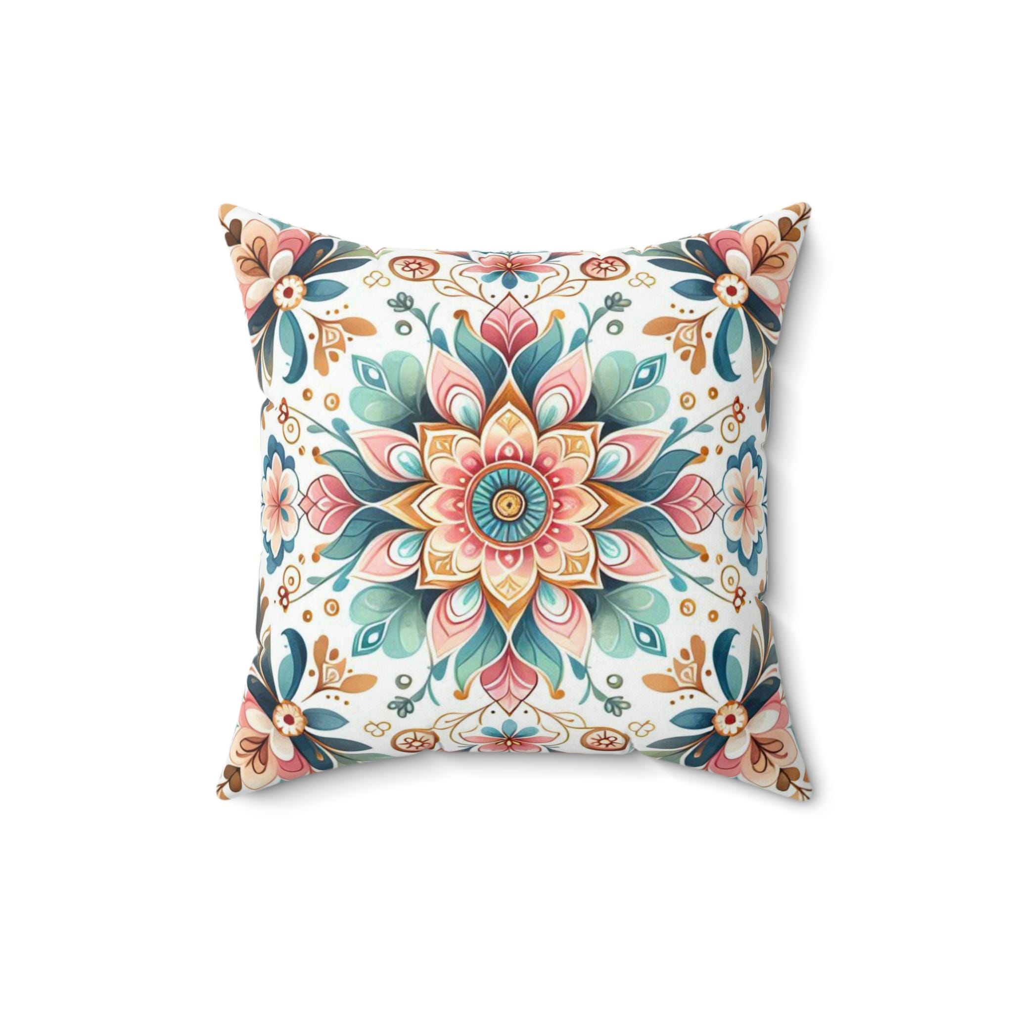 Blooming Mandala Pillow: Floral Throw Cushion, Modern Home Decor
