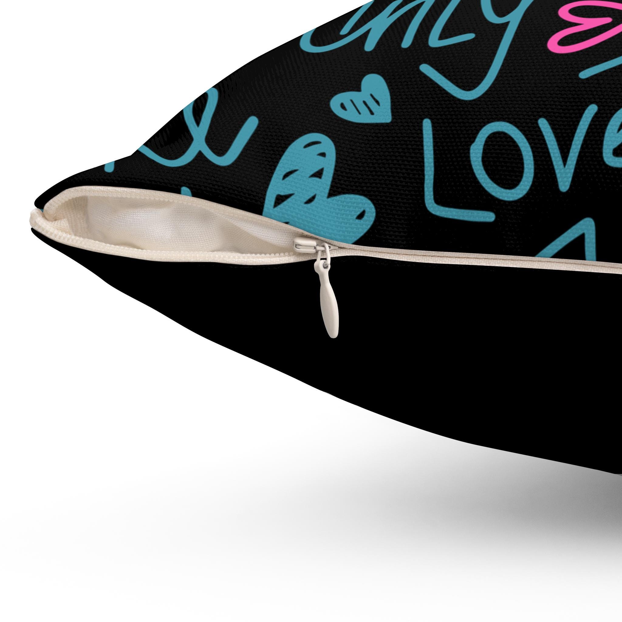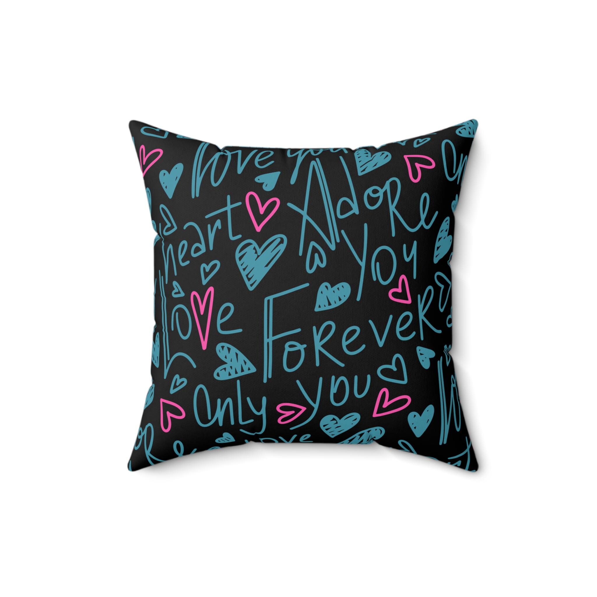 Add a touch of charm to your living space with this cozy square pillow. Its fun and playful design features colorful hearts and sweet phrases that radiate warmth and love, making it the perfect accent for any room. Ideal for snuggling up on the sofa, adding flair to your bed, or as a thoughtful gift for someone special. This pillow fits seamlessly into romantic settings, celebrations like Valentine's Day, anniversaries, or simply to brighten up everyday life. It resonates with those who appreciate unique, vibrant decor and want to foster a loving atmosphere in their home.