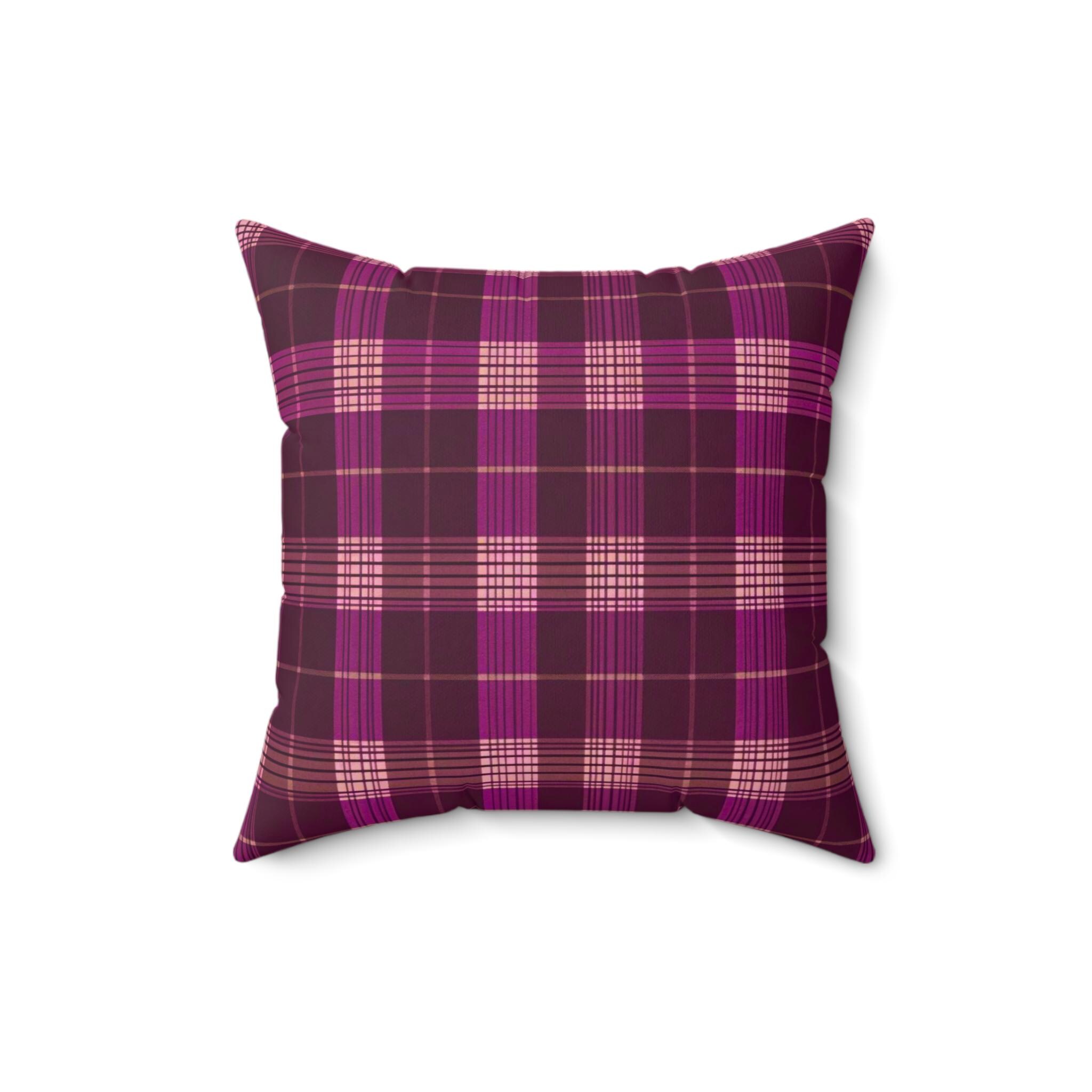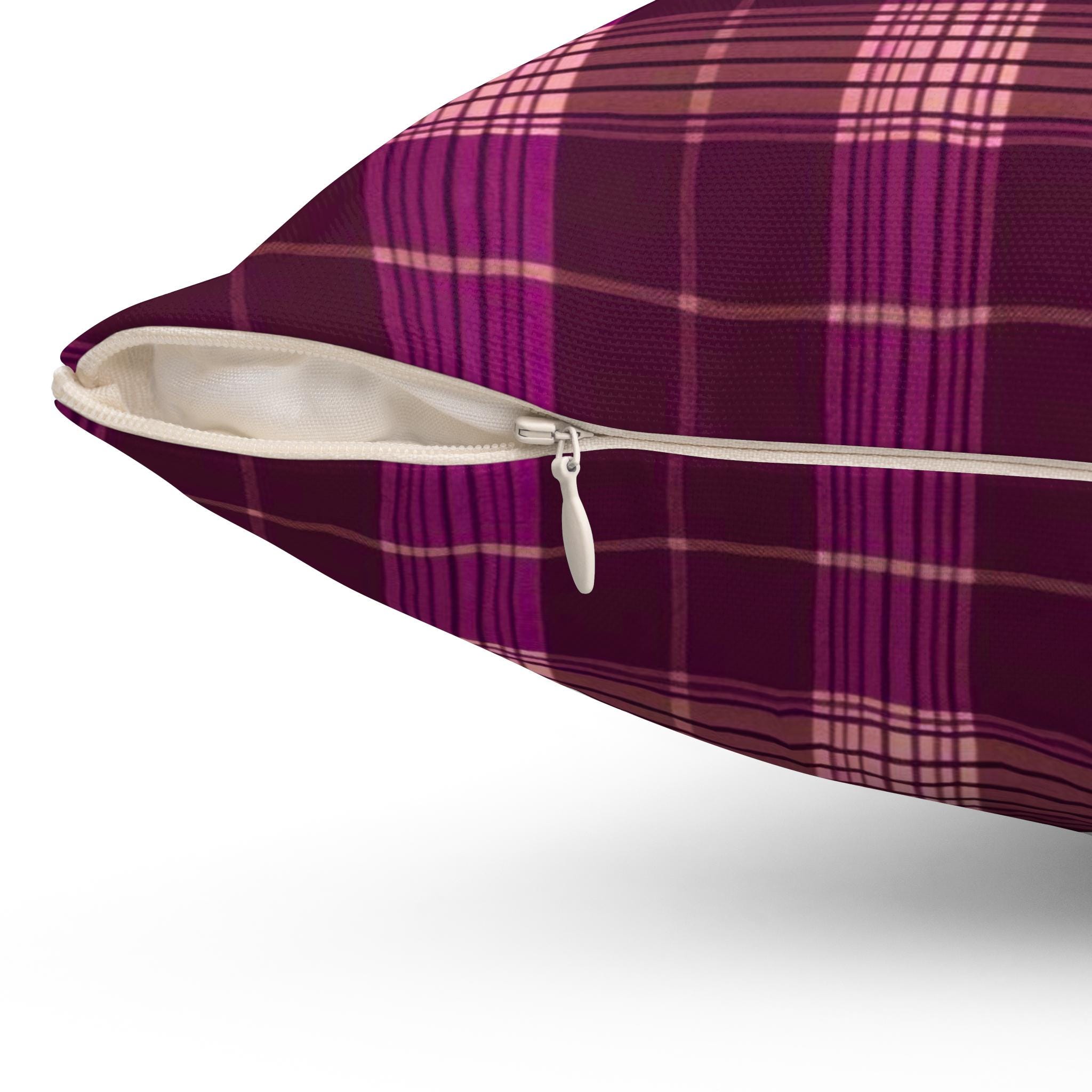 Plum Plaid Pillow: Spun Polyester Accent Pillow for Fall Decor