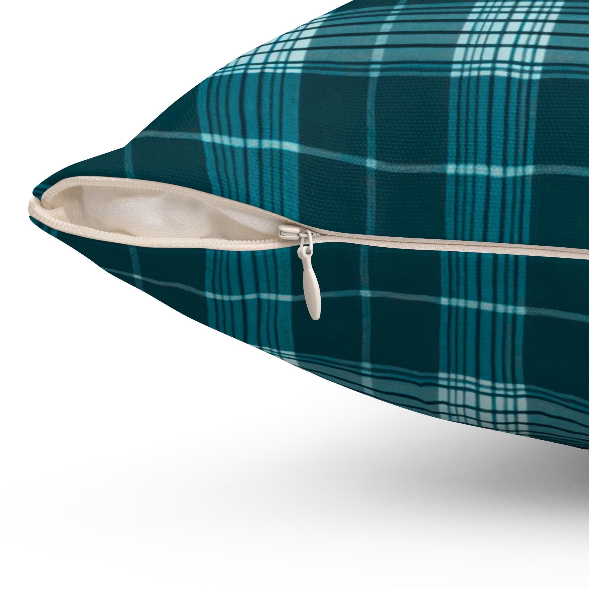 Teal Plaid Throw Pillow: Turkish Style Spun Polyester Accent Pillow