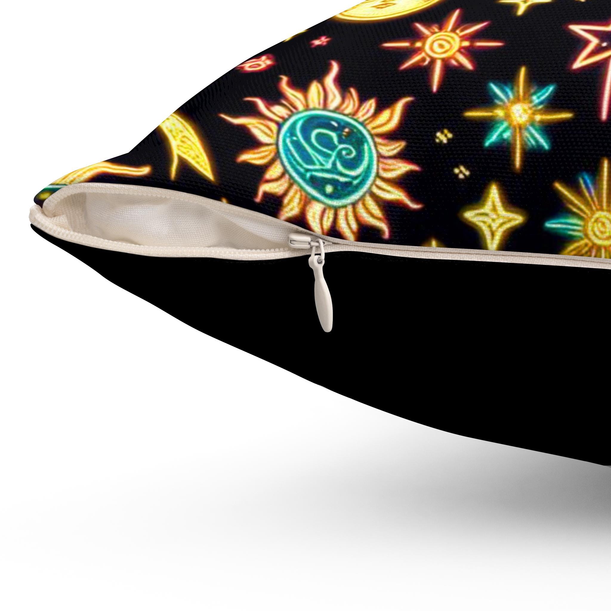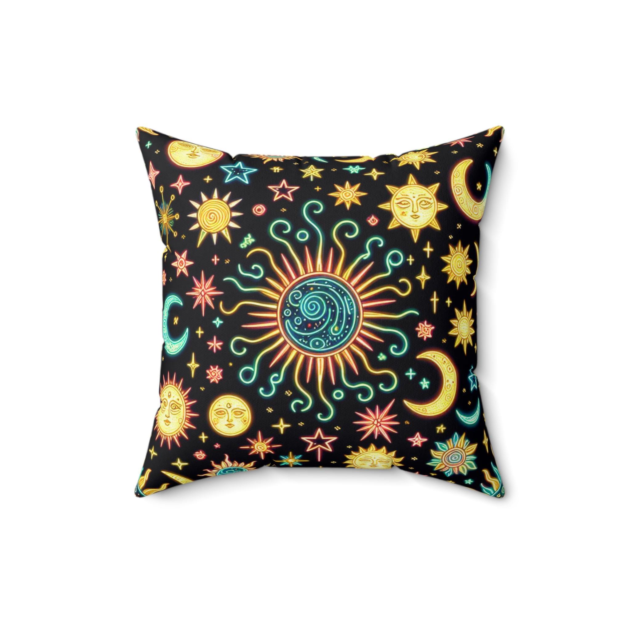 Transform your space with this vibrant Polyester Square Pillow that brings a cosmic vibe into your home. The enchanting design features a mesmerizing array of suns, moons, and celestial elements, perfect for those who appreciate the beauty of the universe. Ideal for adding a pop of color to your living room or bedroom, this pillow makes a stylish statement while offering comfort. It’s a delightful gift for astrology lovers, spiritual seekers, or anyone who enjoys a whimsical touch in their decor. Suitable for holidays such as Christmas, birthdays, or housewarming celebrations, this pillow is a versatile addition to any cozy nook in your home.