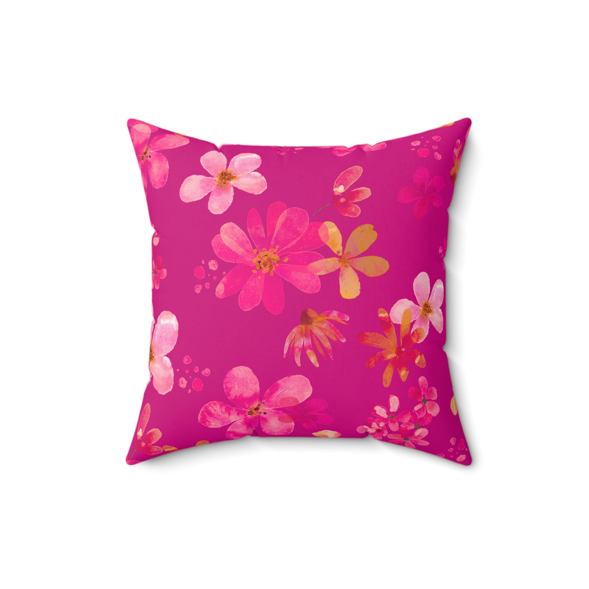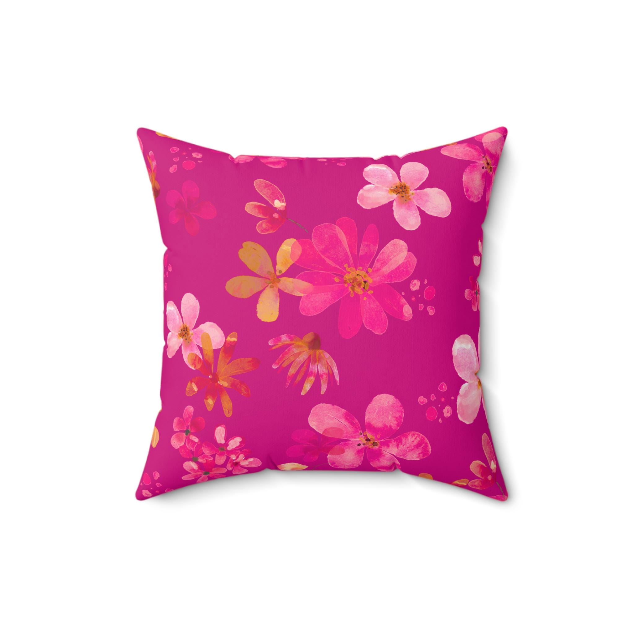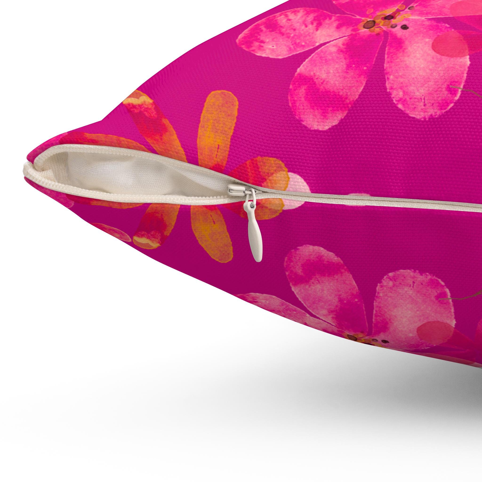 Raspberry Floral Pillow: Colorful Flower Accent Cushion, Spring Home Decor