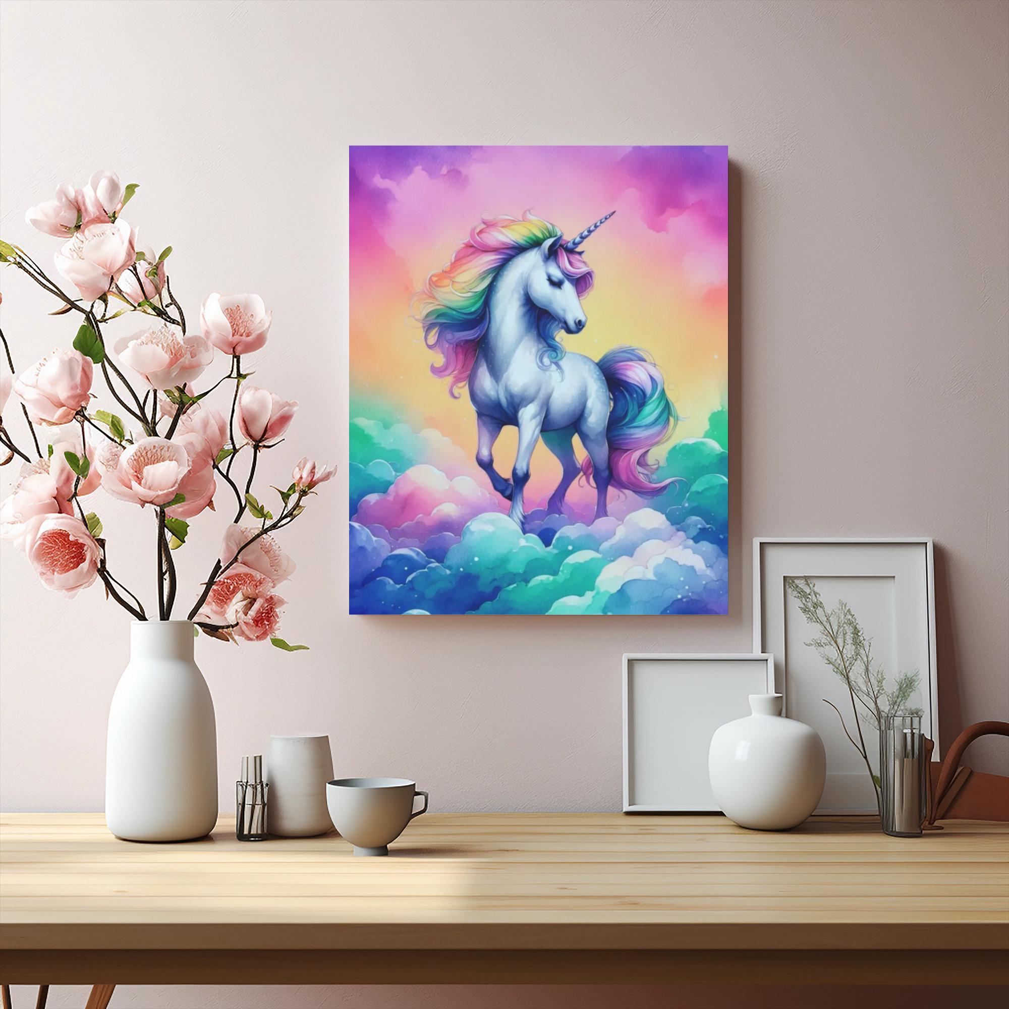 Transform any space with this enchanting Matte Canvas. Featuring a whimsical unicorn surrounded by a dreamy pastel sky, this canvas brings a touch of magic to your home. Perfect for nurseries, playrooms, or any space that craves a splash of color and imagination. Ideal for unicorn lovers of all ages, this artwork serves as a wonderful gift for birthdays, baby showers, or holidays like Christmas and Easter. Its vibrant design promotes a joyful atmosphere, making it a delightful addition to your decor or a thoughtful present that inspires wonder.