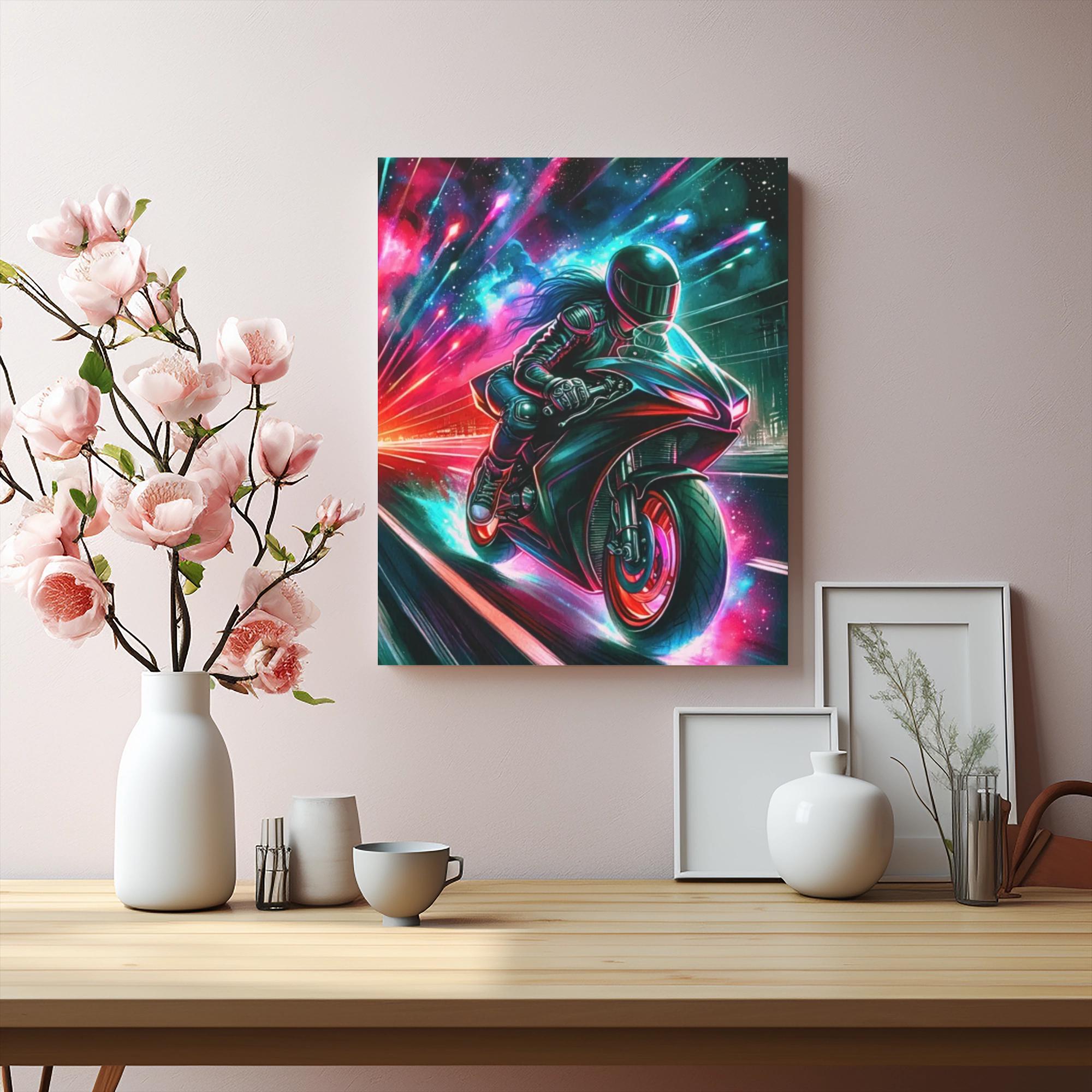 Transform your living space with this stunning Stretched Canvas. Featuring vibrant artwork that captures the thrill of the open road, this piece adds an energetic vibe to any room. Perfect for motorcycle enthusiasts or anyone who loves dynamic art, this canvas can be a focal point in a living room, bedroom, or office. It’s an ideal gift for birthdays, graduations, or any occasion that celebrates adventure and individuality. Bring a burst of color and inspiration into your home and share the excitement with friends and family.