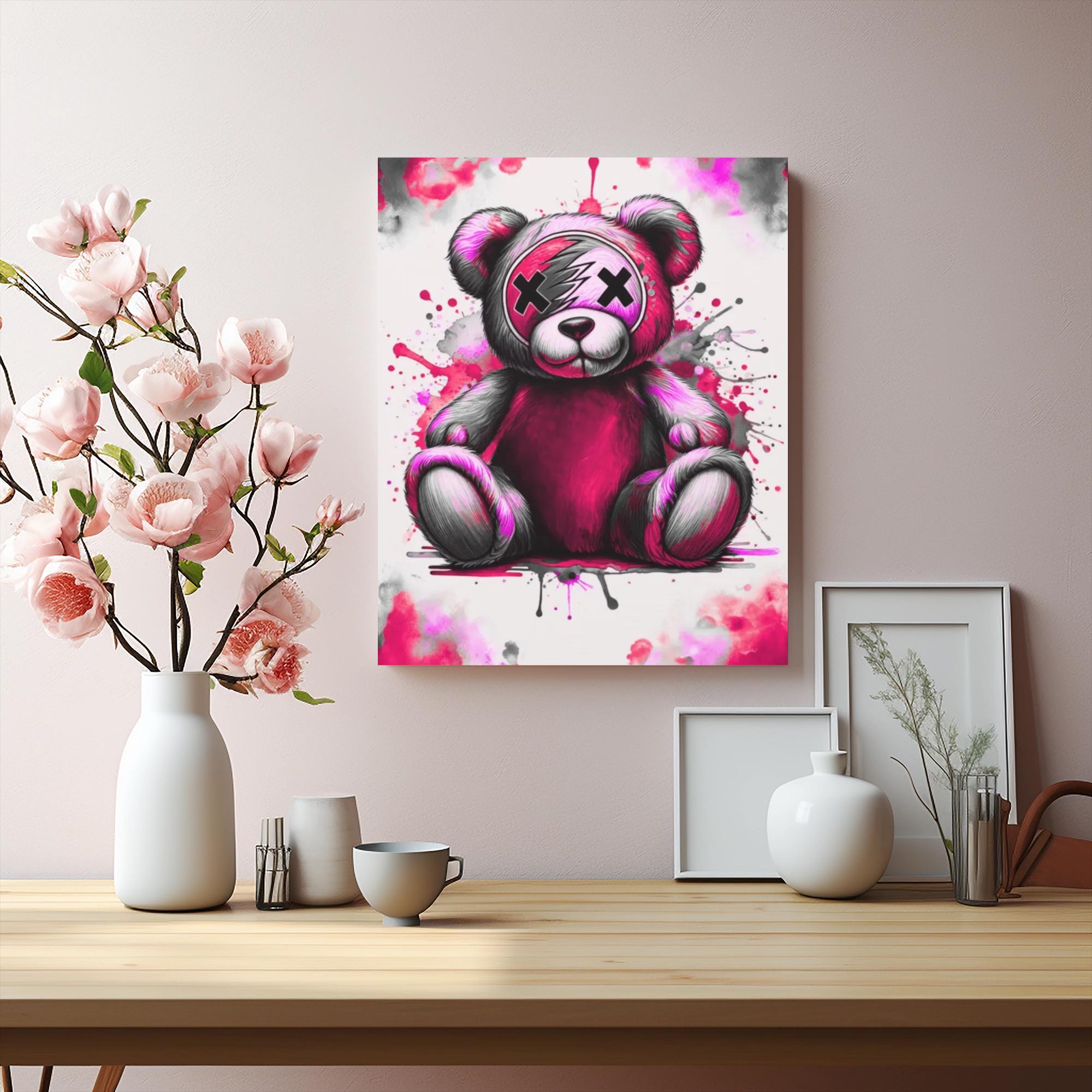 This captivating canvas brings a vibrant splash of personality to any wall. Featuring a charming teddy bear design in bold pink hues, this canvas serves as a perfect conversation starter and a delightful touch for any space. Ideal for adding a whimsical element to nurseries, kids' rooms, or play areas, it invites a fun and playful atmosphere. The quality craftsmanship and attention to detail make it suitable for art lovers and collectors alike. Perfect for gifting on special occasions such as birthdays, baby showers, or holidays like Halloween and Valentine's Day, this canvas will surely brighten any room!