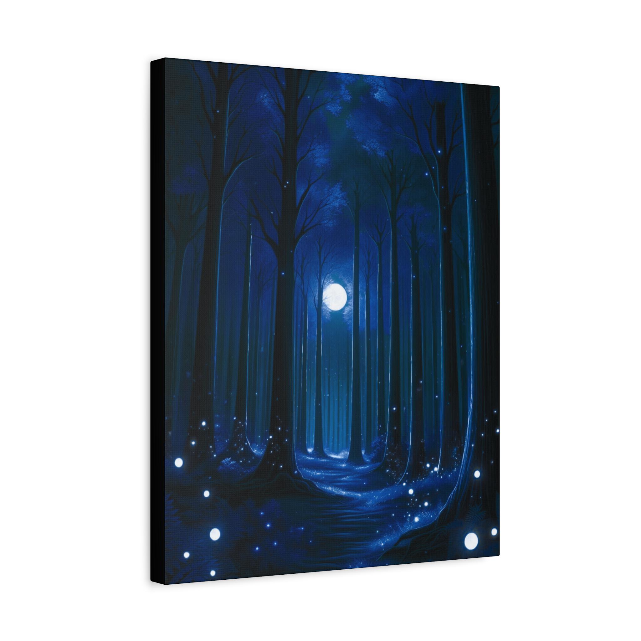 MIdnight Ice Forest Canvas Art: Magical Night Sky Wall Decor (16x20)