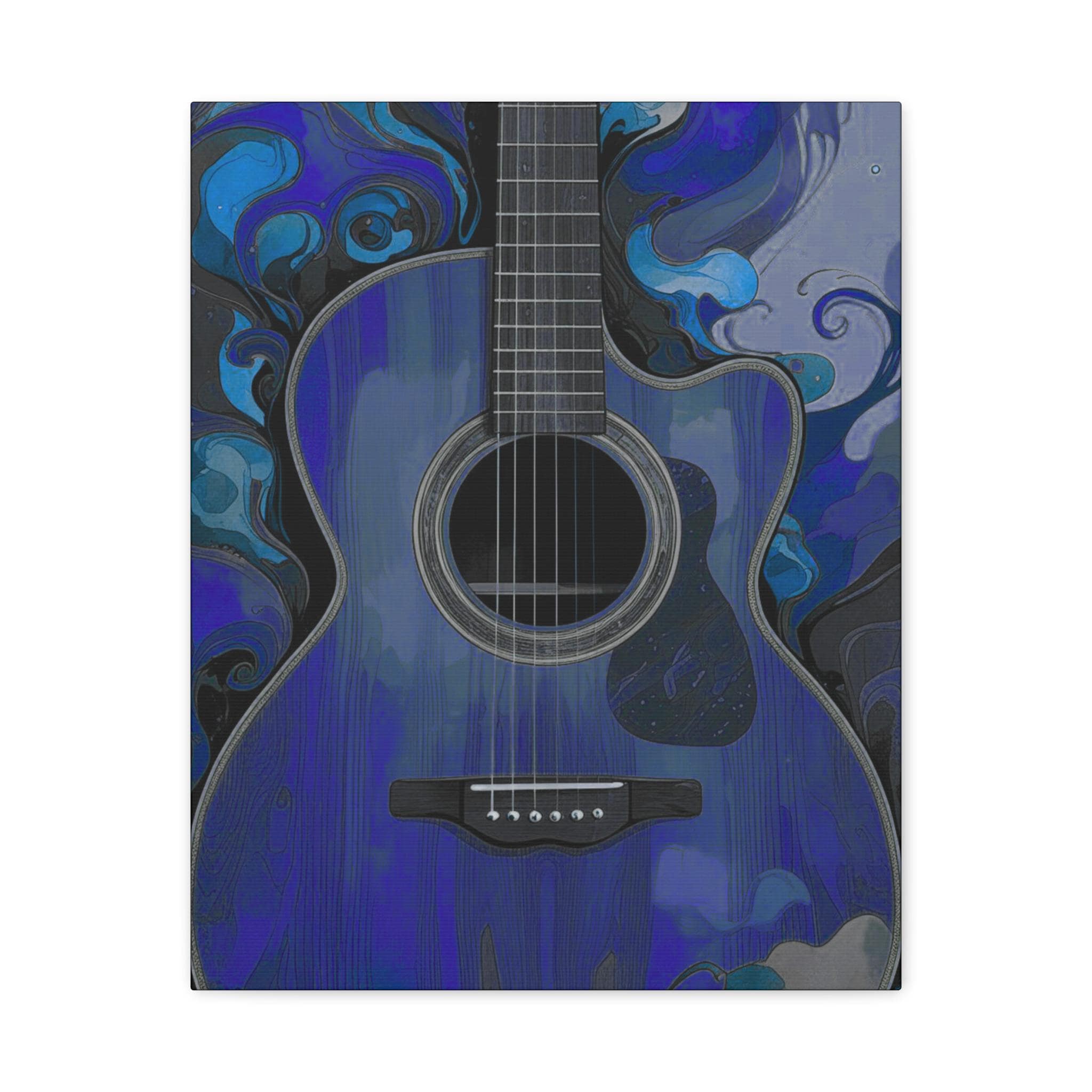 Cobalt Blue Acoustic Guitar Canvas Art: Musician Home Decor (16x20 Canvas Only)