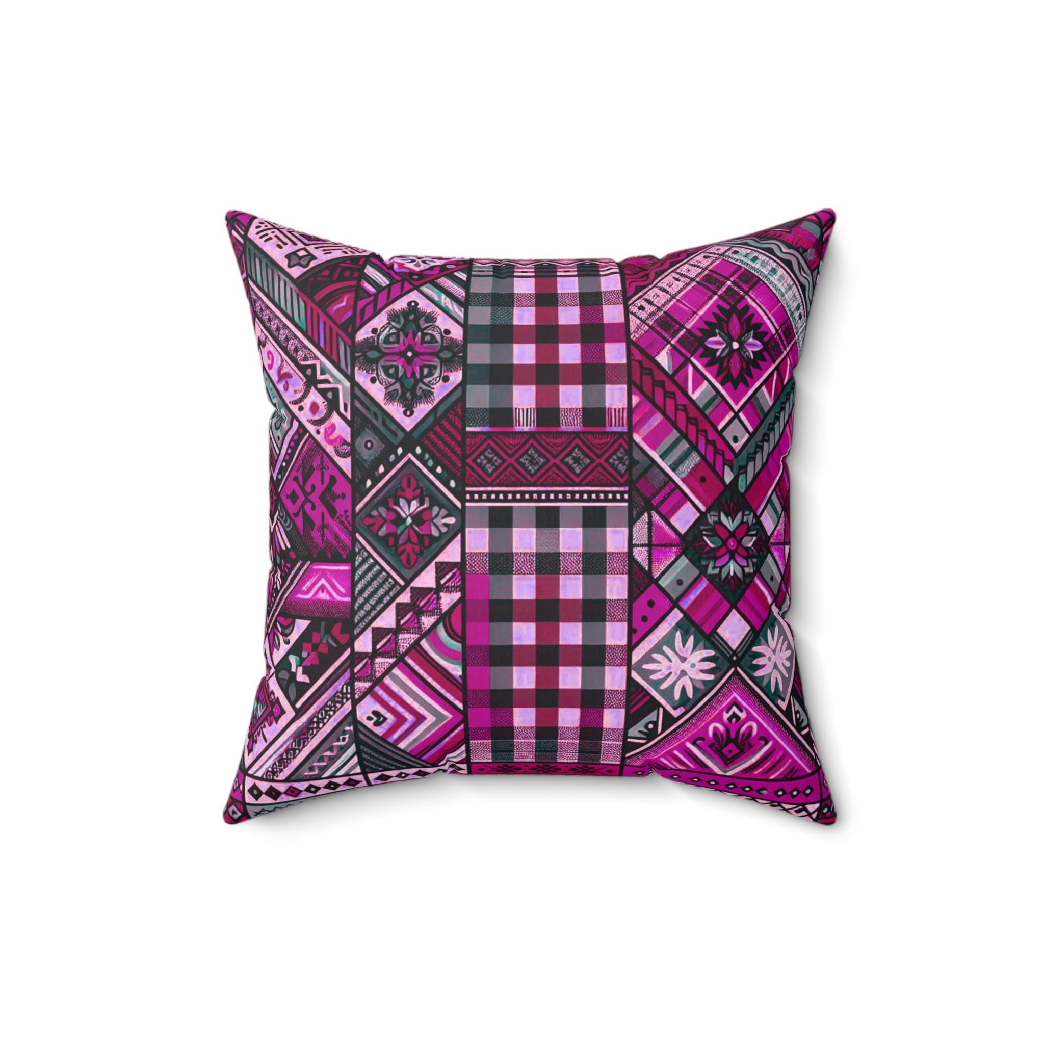 Smitten Ash Plaid Pillow: Boho Chic Spun Polyester Cushion