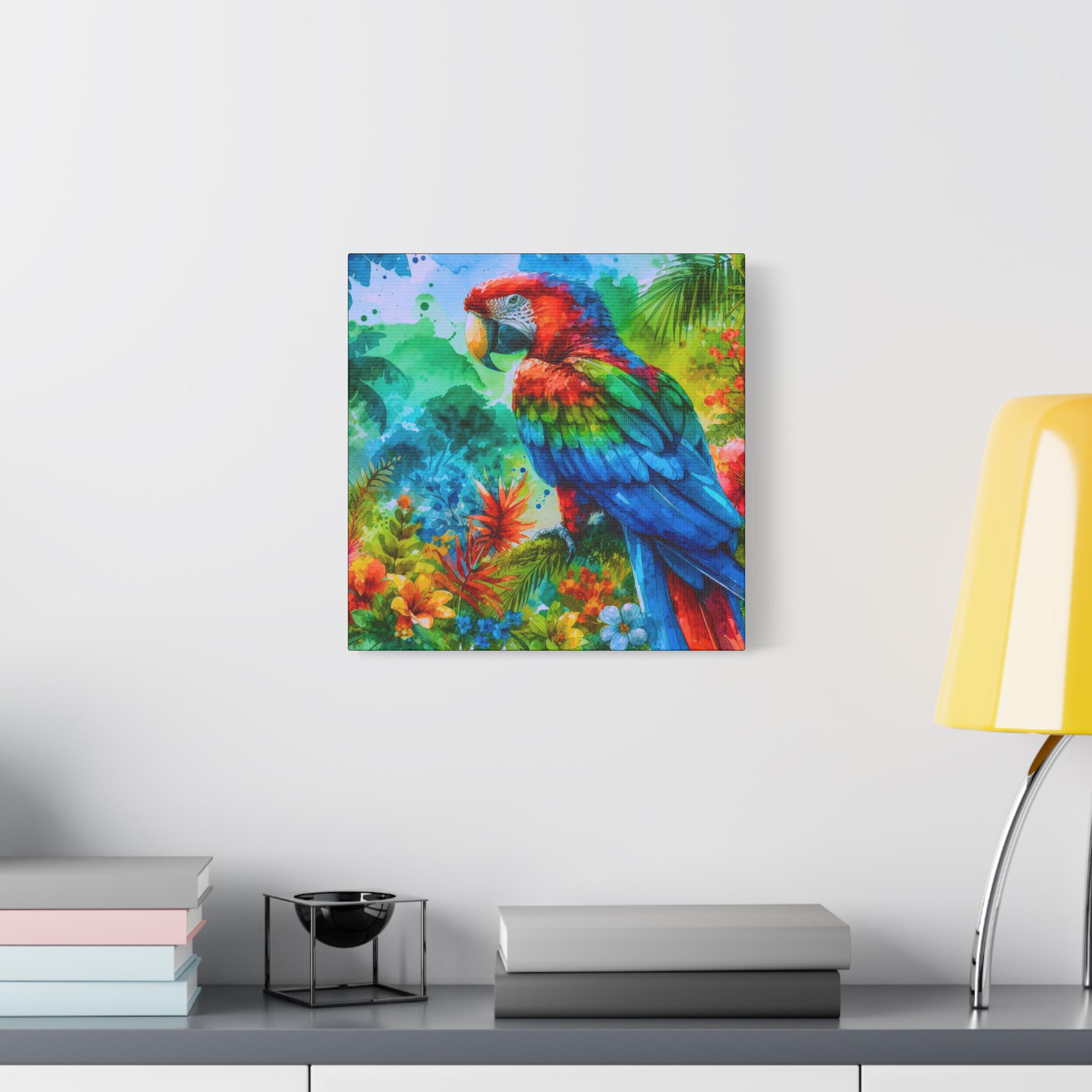 Transform your space with this stunning Matte Canvas, Stretched, 1.25" featuring vibrant imagery of a majestic parrot set against a lush, colorful backdrop. This artwork radiates positivity and brings life to any room, adding a splash of nature's beauty to your walls. Ideal for nature lovers, bird enthusiasts, and those who appreciate vivid art, this piece works wonderfully as a focal point in a living room, bedroom, or office. Whether you are decorating for a special occasion, celebrating a homecoming, or simply refreshing your space, this canvas is perfect for any season. It also makes a thoughtful gift for birthdays, housewarmings, or holidays, reminding your loved ones of the beauty found in nature.