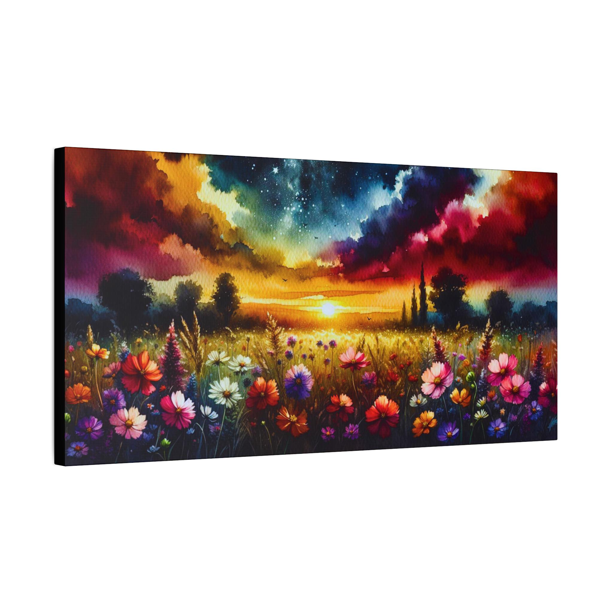 Onyx Floral Embers Canvas Wall Art: Dreamy Night Sky Decor (30x15)