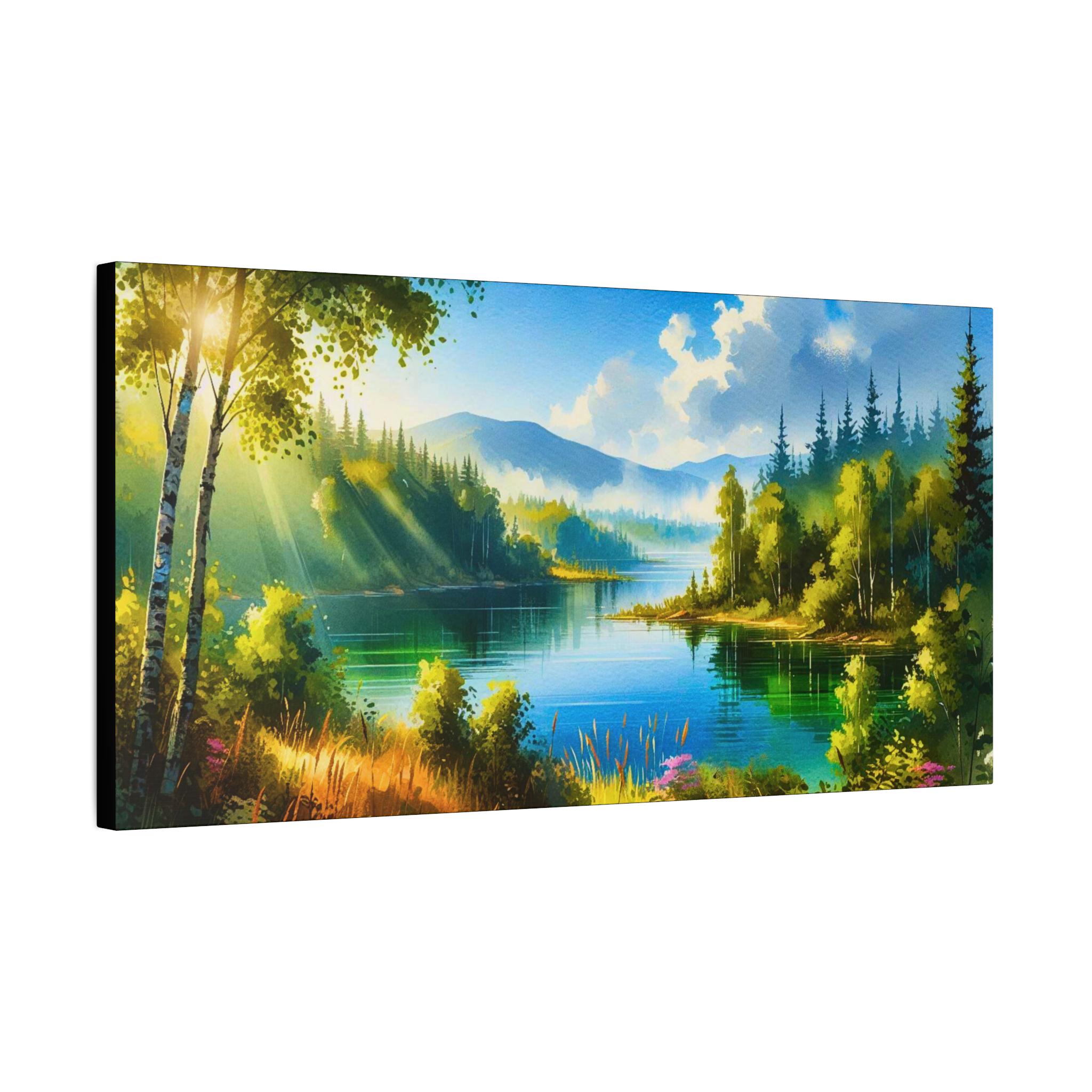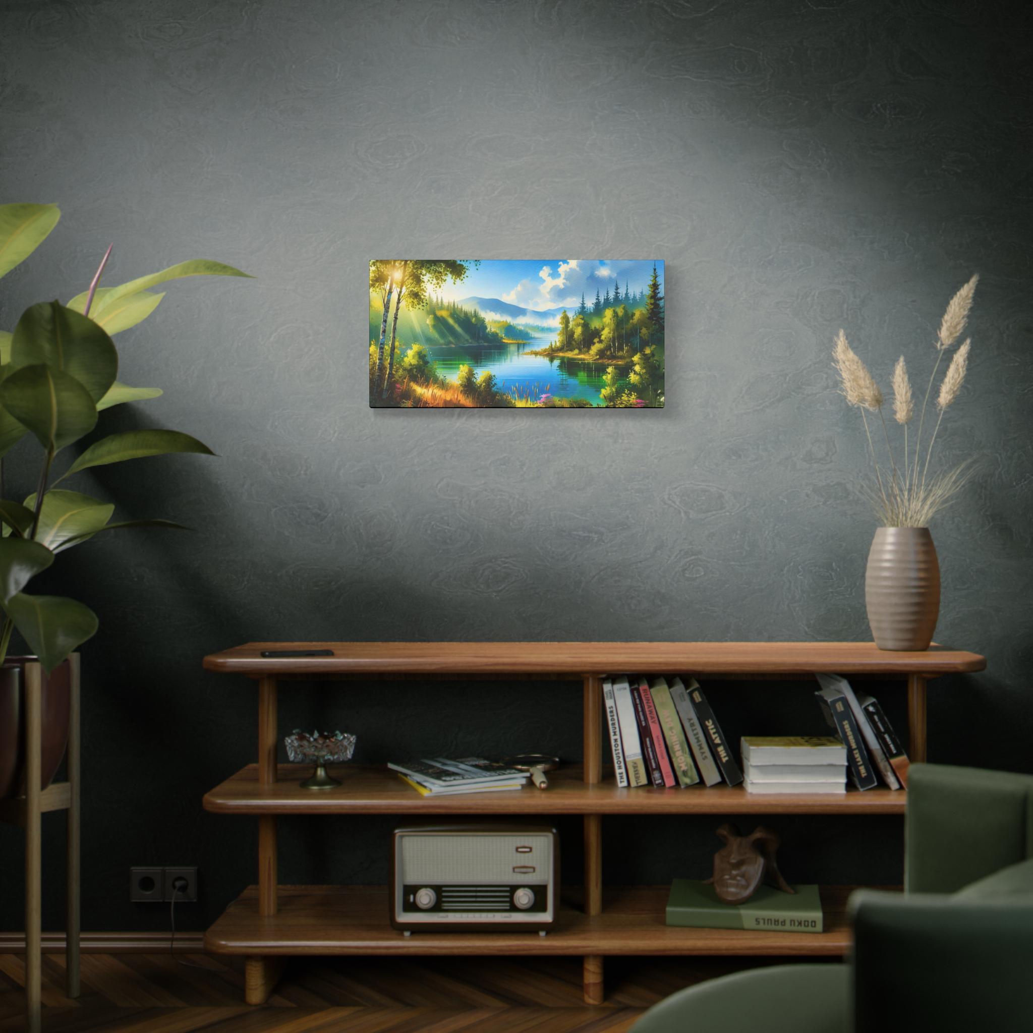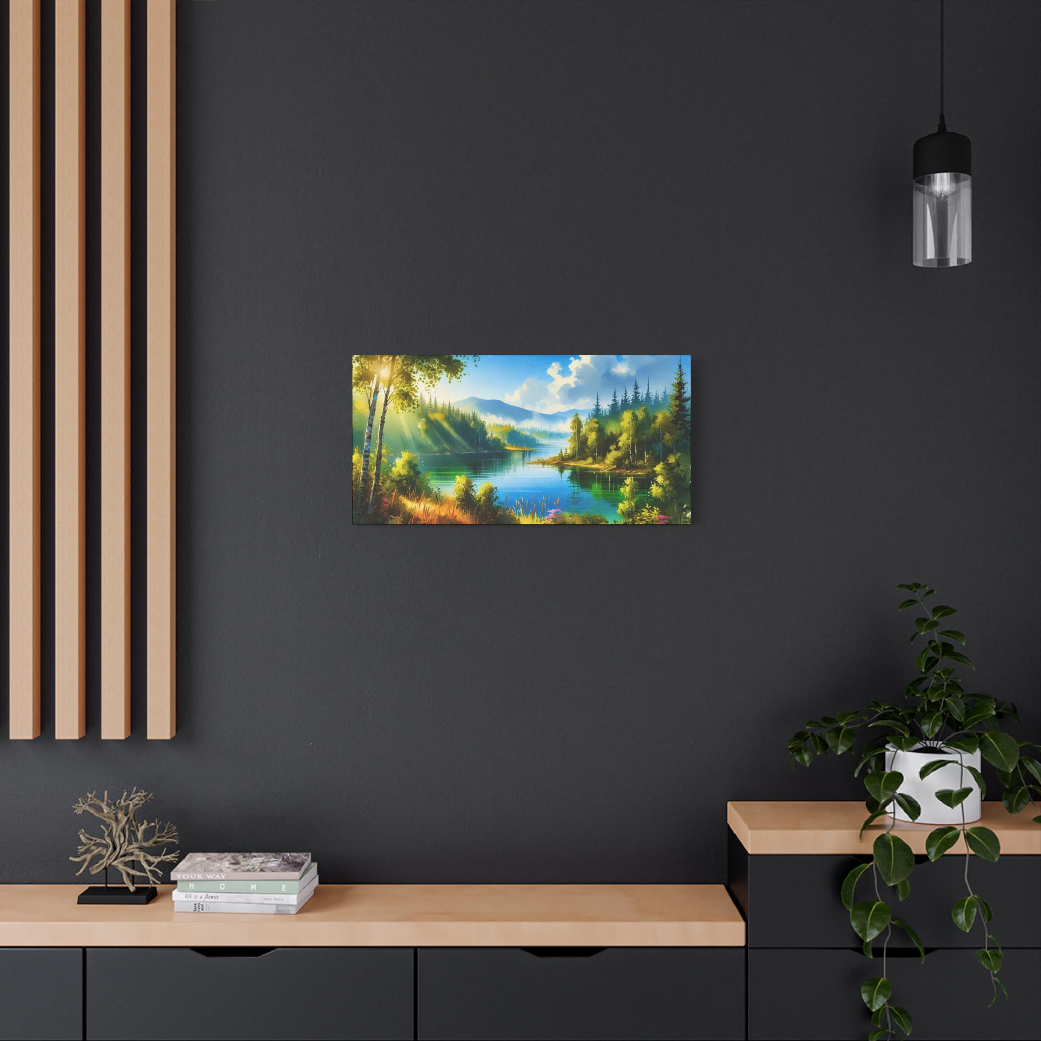 Treasure Lake Canvas Wall Art: Serene Landscape, Nature Home Decor (30x15)