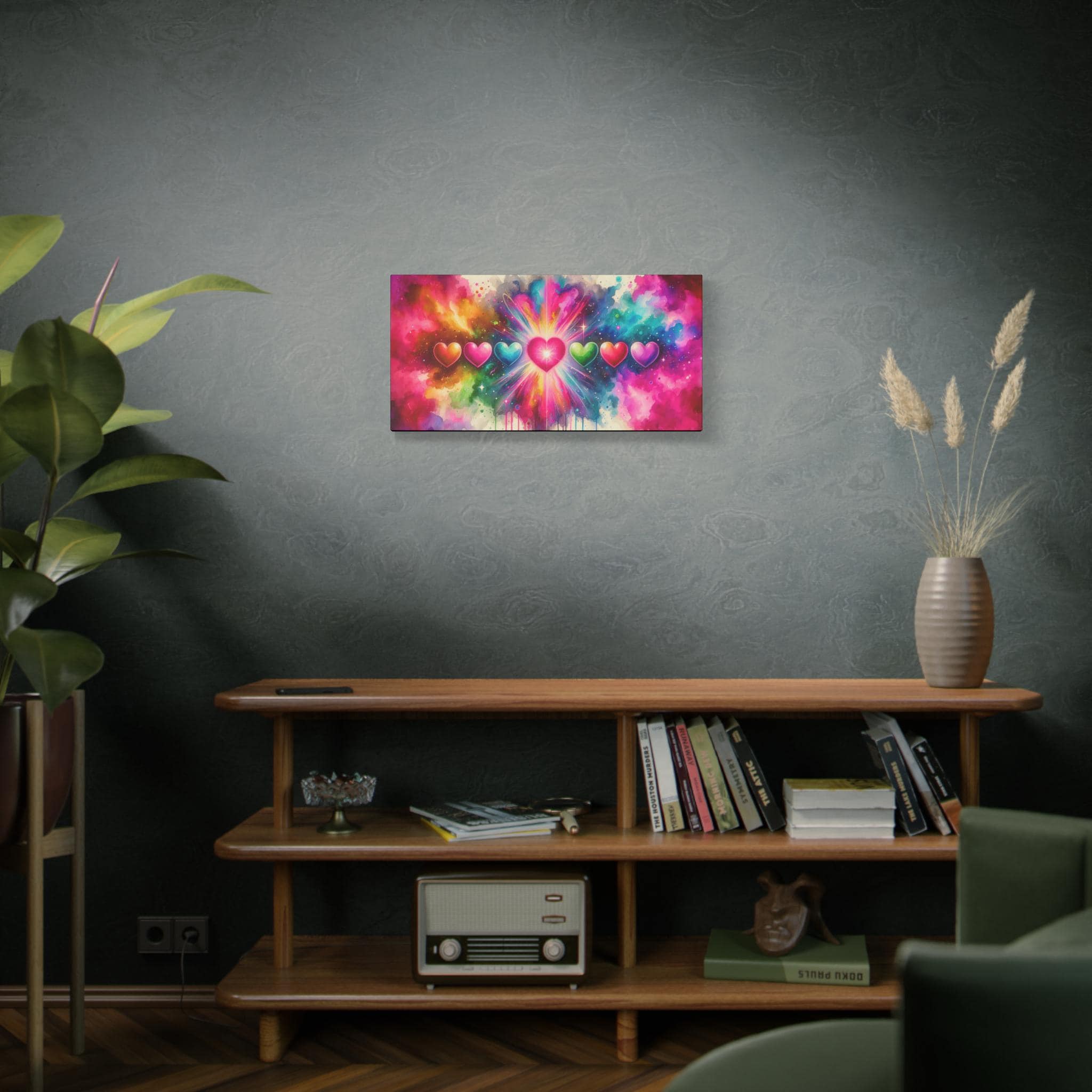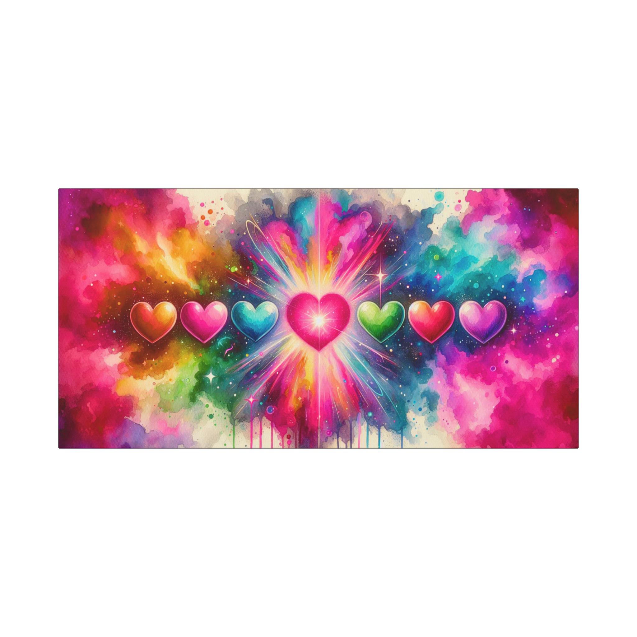 Add a spark of color and joy to your space with this vibrant canvas. Featuring a delightful array of colorful hearts against a striking backdrop, this artistic piece exudes warmth and happiness. Perfect for uplifting any room, this canvas makes for an ideal addition to your living room, bedroom, or office, bringing a friendly and inviting atmosphere. Whether you're an art enthusiast or simply looking to brighten your surroundings, this canvas will resonate with those who appreciate creativity and love.