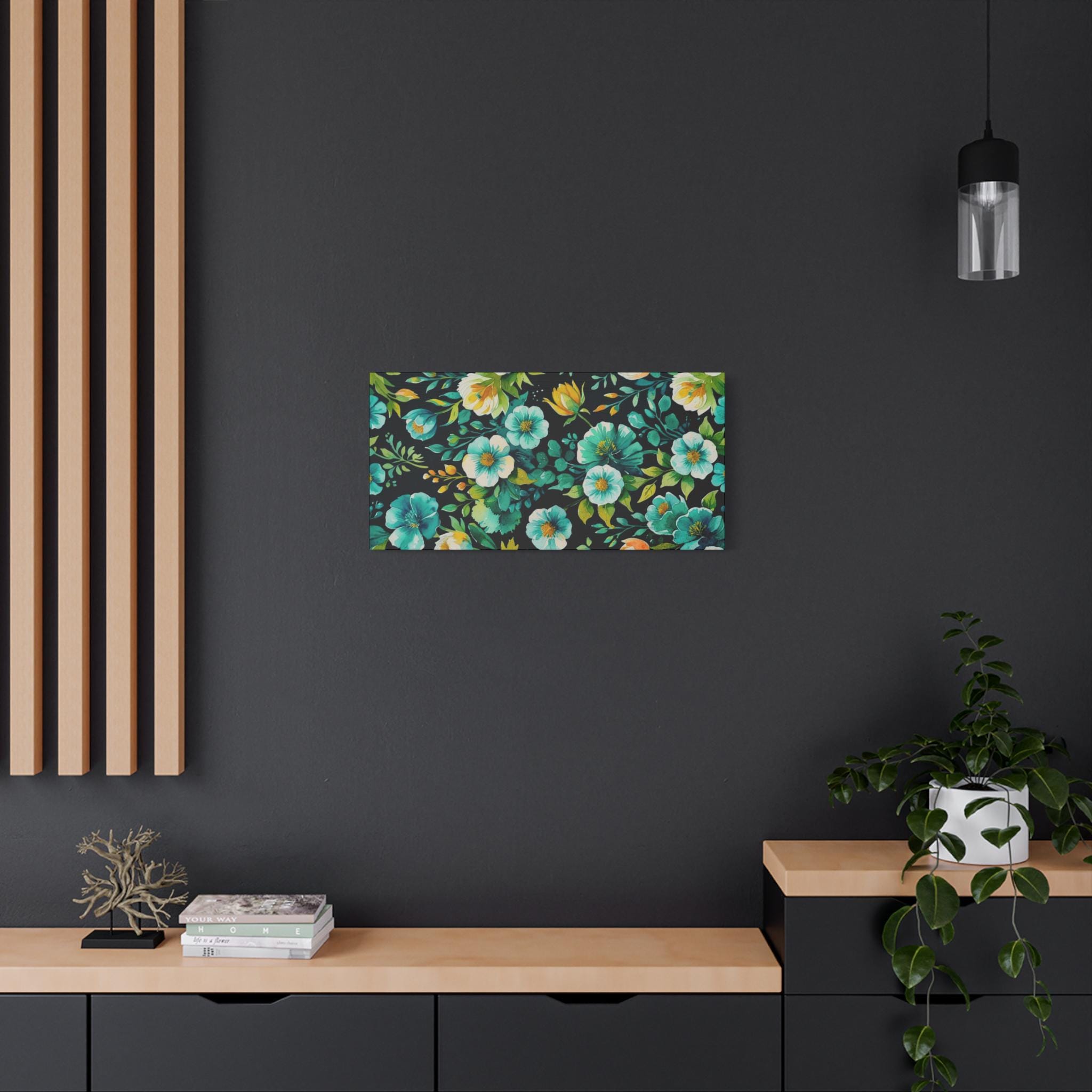 Emerald Floral Canvas Wall Art: Modern Home Decor, Sustainable Pine Wood