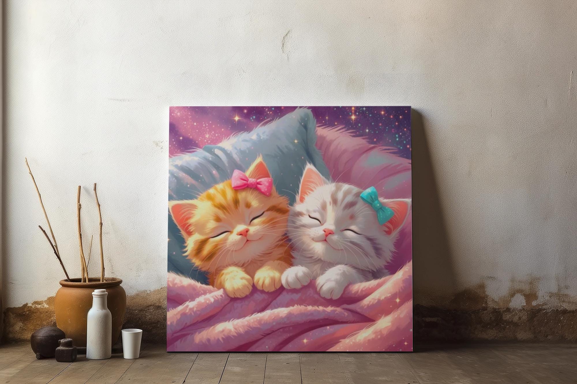 This delightful canvas art piece brings a cozy and heartwarming vibe to any space. Featuring two adorable kittens snuggled together, it's perfect for cat lovers and anyone looking to add a touch of charm to their home decor. The vibrant colors and high-quality printing create a stunning focal point in living rooms, bedrooms, or nurseries. This canvas is ideal for gifting on occasions such as birthdays, holidays, or just because you want to brighten someone's day. Its cheerful imagery promotes a sense of warmth and tranquility, making it a wonderful addition to any cat-themed collection or as a standout art piece.