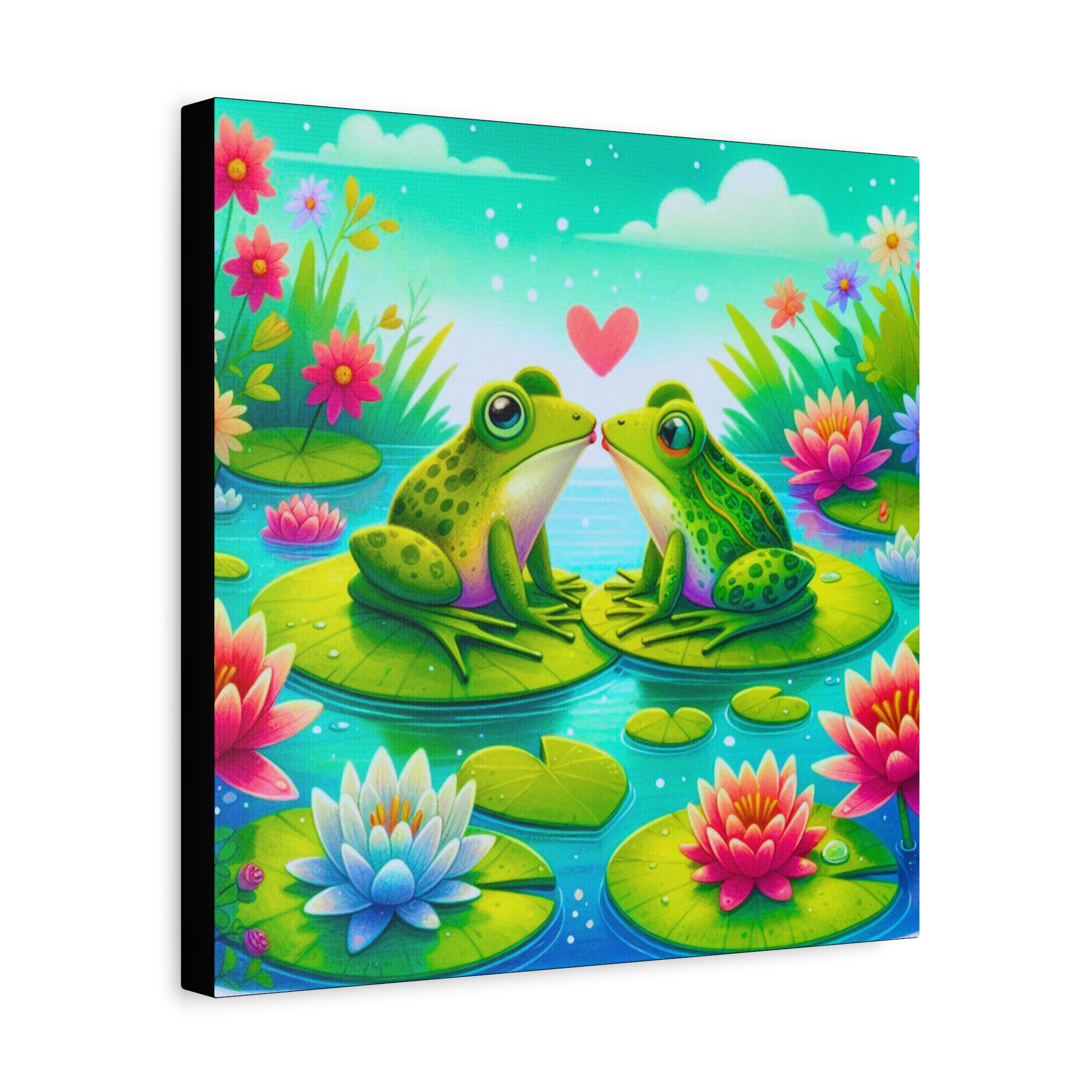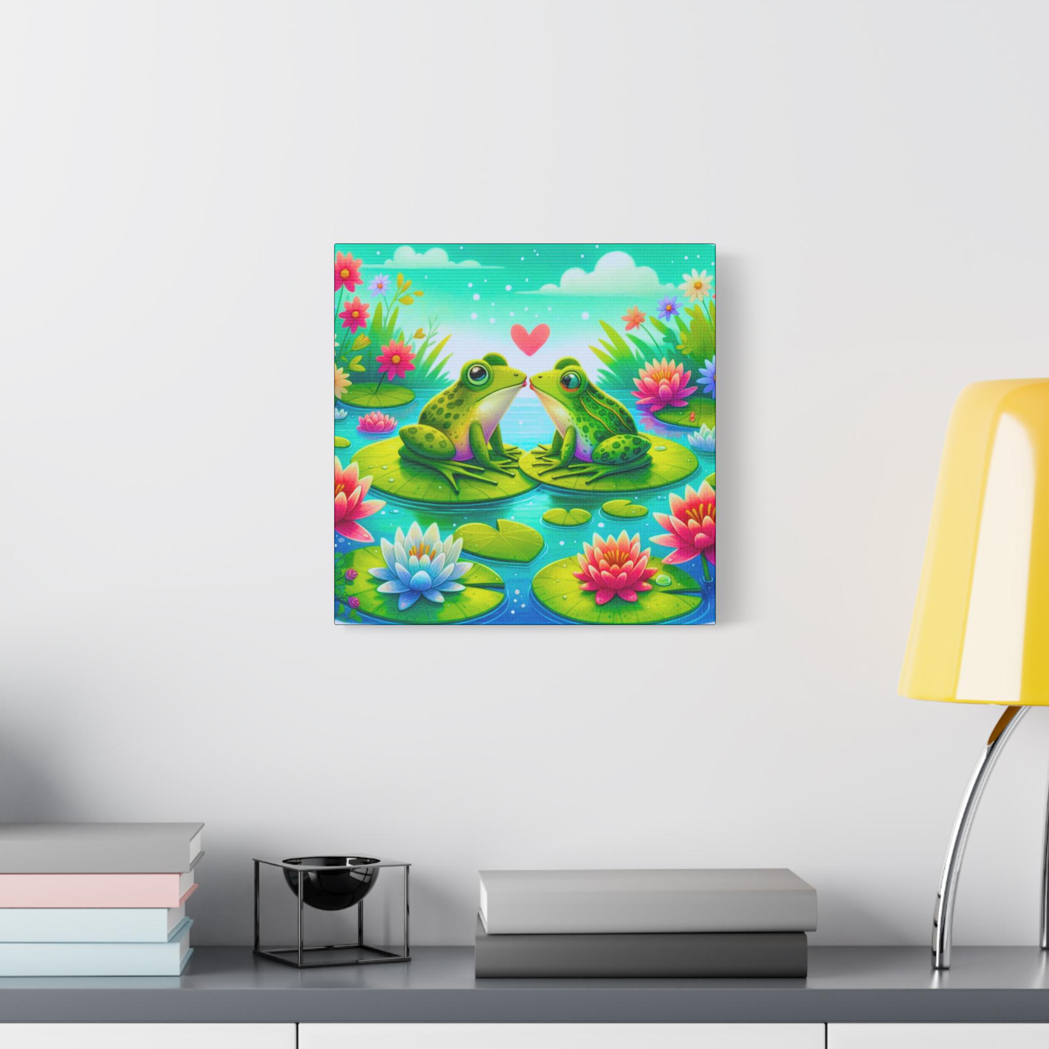 Frog Lovin' Matte Canvas Wall Artwork, Cute Animal Wall Decor, Nature Inspired Gift, Home Decoration, Vibrant Frog Artwork, Playroom Canvas