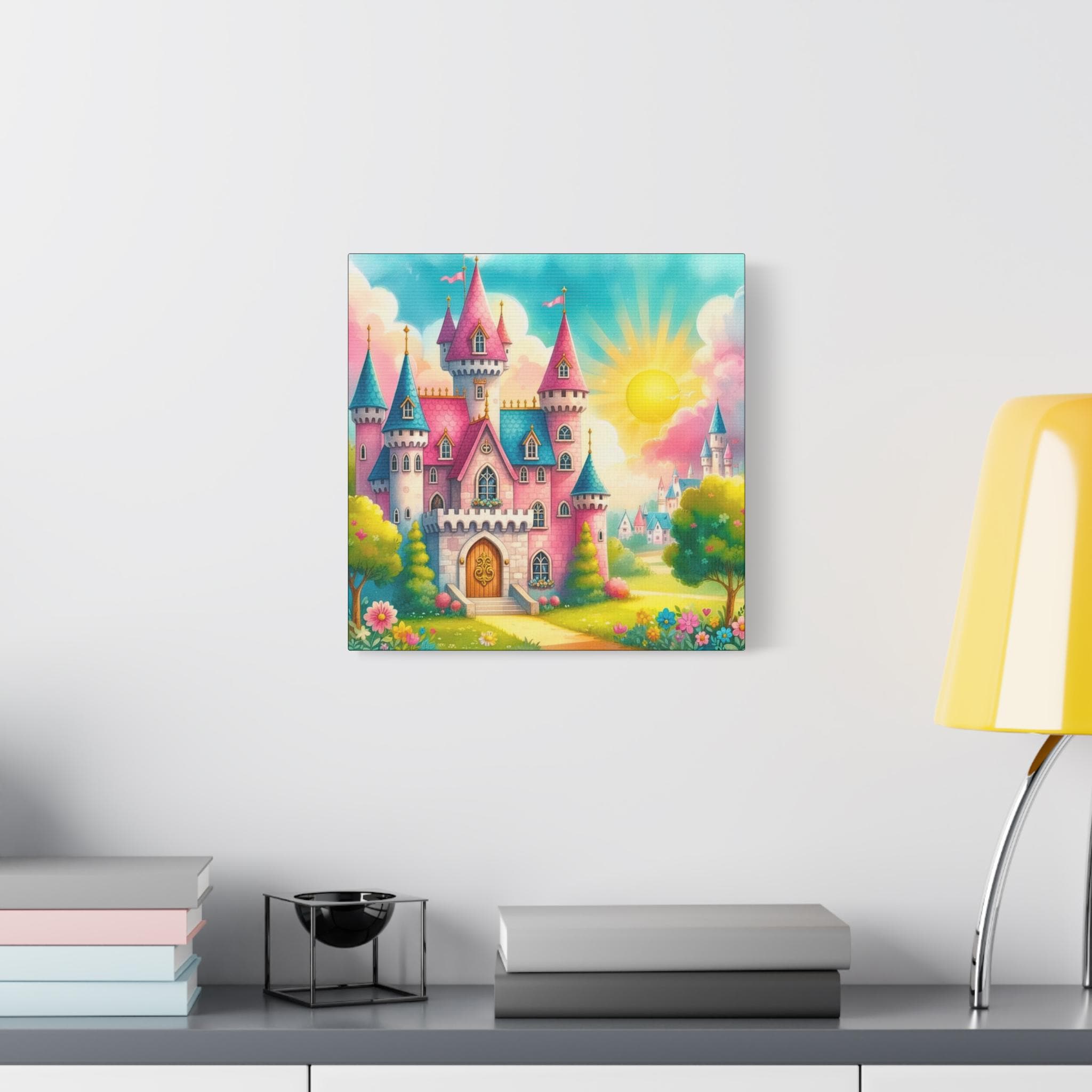 Enchanting Castle Canvas Wall Art: Whimsical Kids Room Decor (14x14)