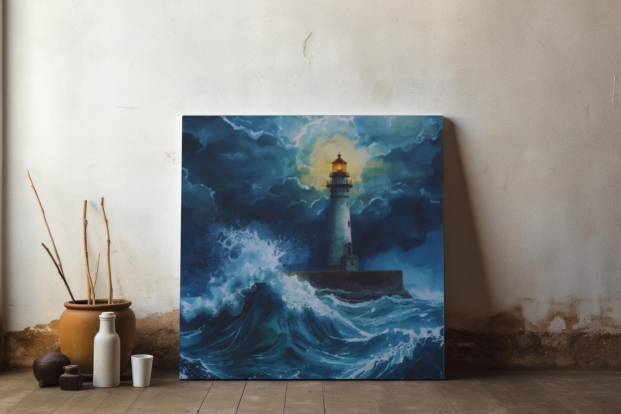 Transform your space with this stunning Matte Canvas, featuring a breathtaking lighthouse scene that evokes a sense of calm amidst the storm. This beautiful artwork brings a touch of coastal charm into your home or office, creating a serene atmosphere perfect for relaxation or inspiration. Ideal for nautical lovers and anyone seeking a reminder of nature's beauty, this piece serves as a beautiful focal point in both bedrooms and living rooms. Celebrate special occasions such as housewarmings, weddings, or simply enhance your own environment with this unique canvas. Its versatile style makes it a fantastic gift for holidays like Christmas, or Mother’s Day, or as a thoughtful surprise for a loved one on any day!