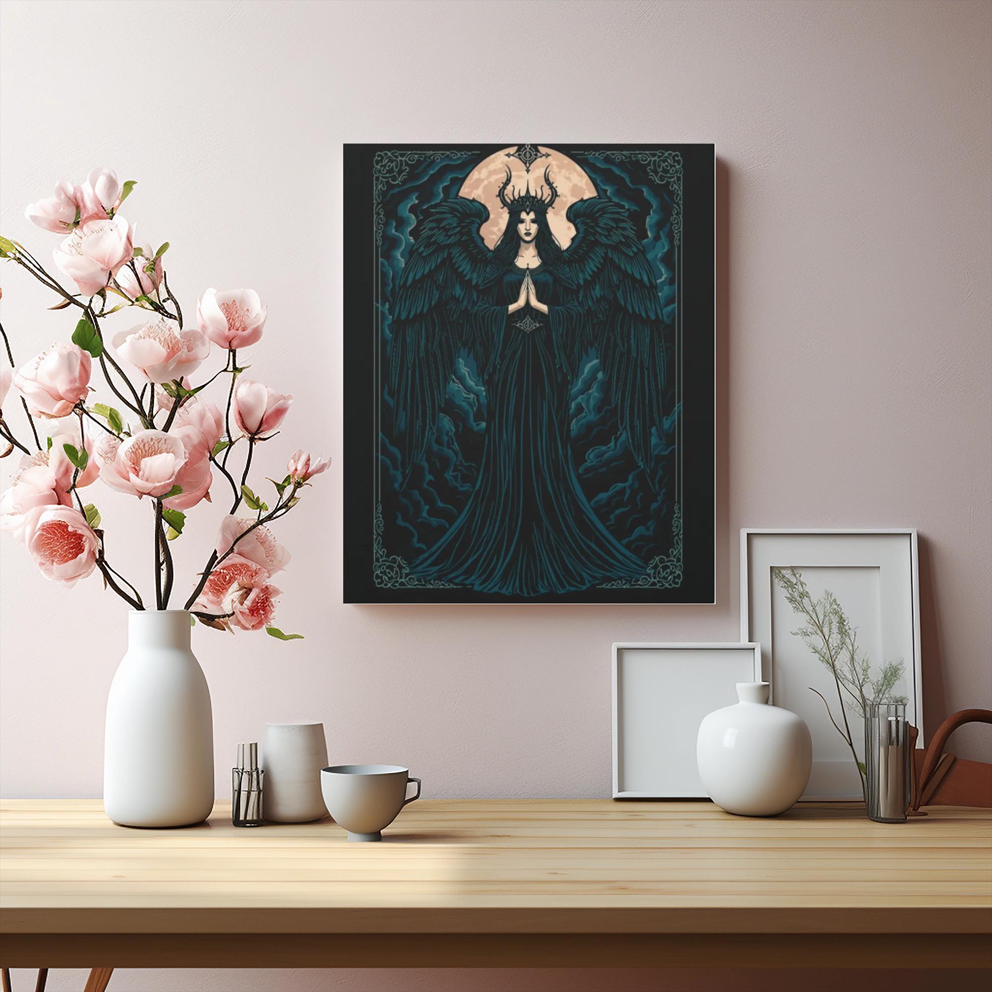 Transform your space with this stunning stretched matte canvas, perfect for adding a touch of elegance and dramatic flair to your home decor. The intricate design and rich colors create an atmosphere of mystery and sophistication, making it an ideal statement piece for any room. Whether you're an art enthusiast, a lover of gothic aesthetics, or simply seeking to enhance your interior style, this canvas will fit beautifully into your life. Perfect for showcasing on special occasions such as Halloween, themed parties, or for everyday displays that invoke a sense of the enchanting. This piece is not just art; it's a conversation starter, ideal for those who appreciate unique, high-quality decor.