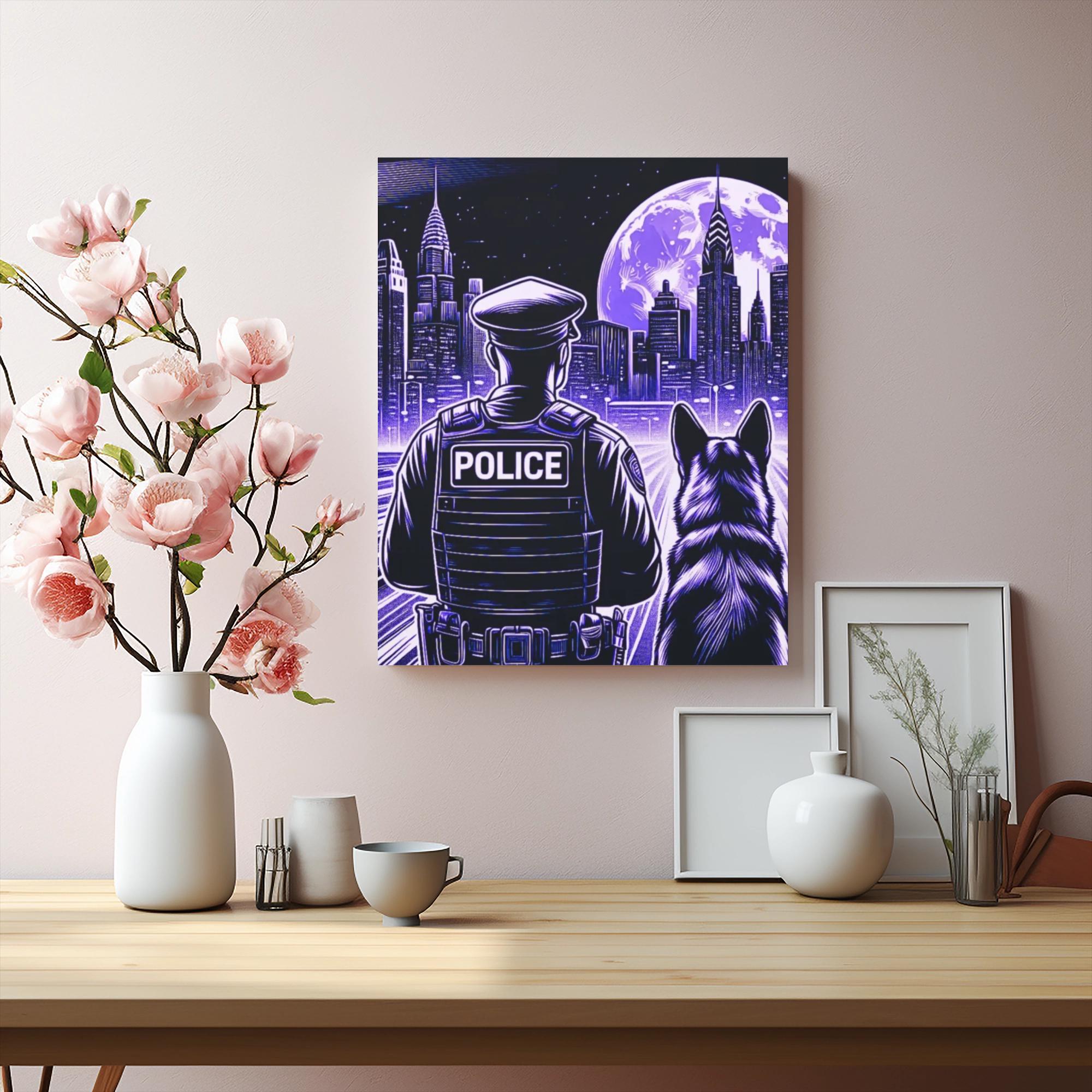 This stunning matte canvas elevates your space with a captivating design that resonates with courage and loyalty. Perfect for those who appreciate the bond between police officers and their K-9 partners, this artwork creates a powerful statement in any room. Ideal for living rooms, offices, or community spaces, the canvas will evoke feelings of pride and connection every time you see it. A meaningful gift for law enforcement professionals, dog lovers, or anyone celebrating National Police Week, this unique piece is suitable for anniversaries or special gatherings honoring service and sacrifice.