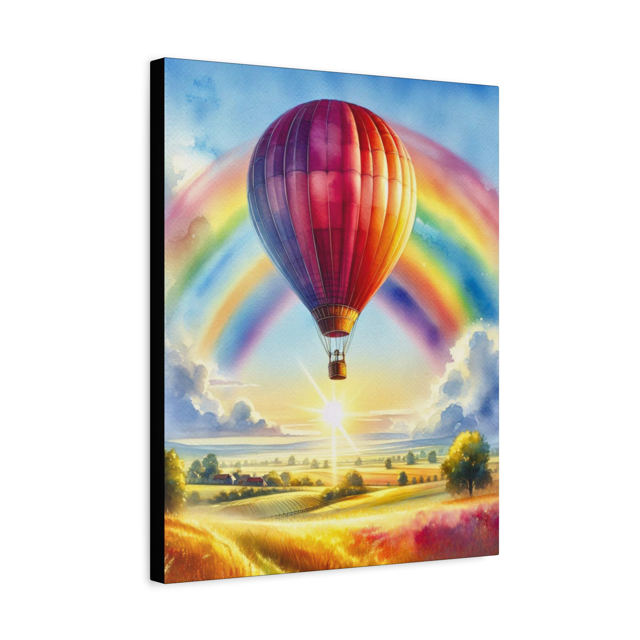 Hot Air Balloon Canvas Art: Rainbow Landscape, Motivational Decor (16x20)