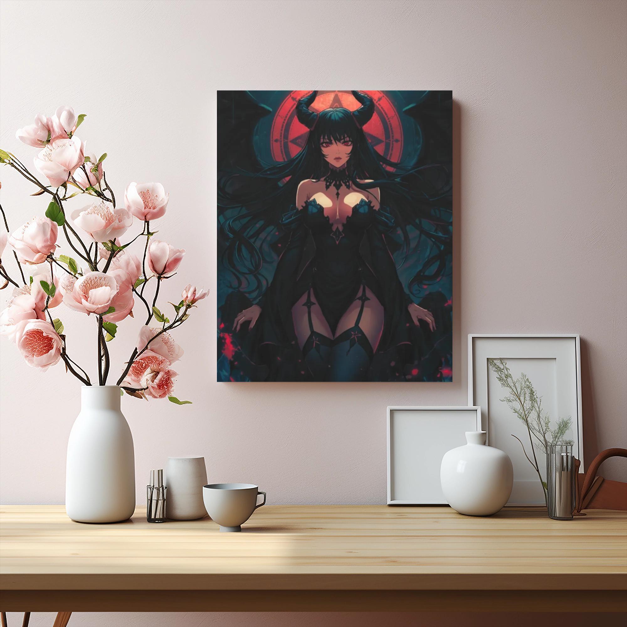 Command attention with Blood Sigil Empress, a powerful canvas that radiates dark magic and divine rebellion. Featuring a horned enchantress cloaked in gothic elegance, she stands before a glowing red pentagram, her gaze intense and her pose commanding. Intricate details—from her flowing black hair to the swirling crimson backdrop—create a visual spell that’s equal parts seductive and supernatural. Ideal for fans of demon lore, witchy aesthetics, and fantasy art that dares to be bold, this piece transforms any space into a shrine of shadow and strength. A dramatic gift for Halloween lovers, occult collectors, or anyone who thrives in the beautifully eerie.