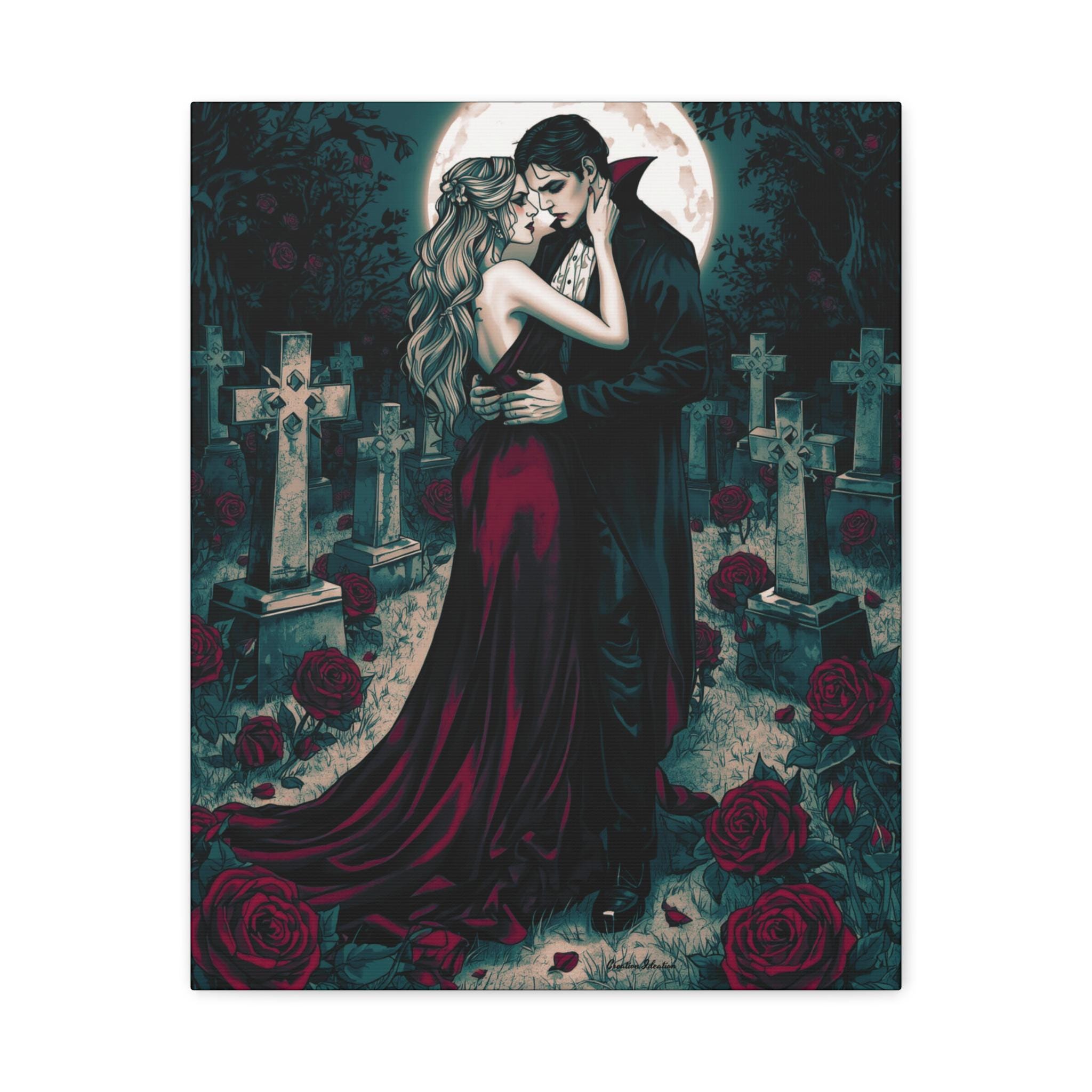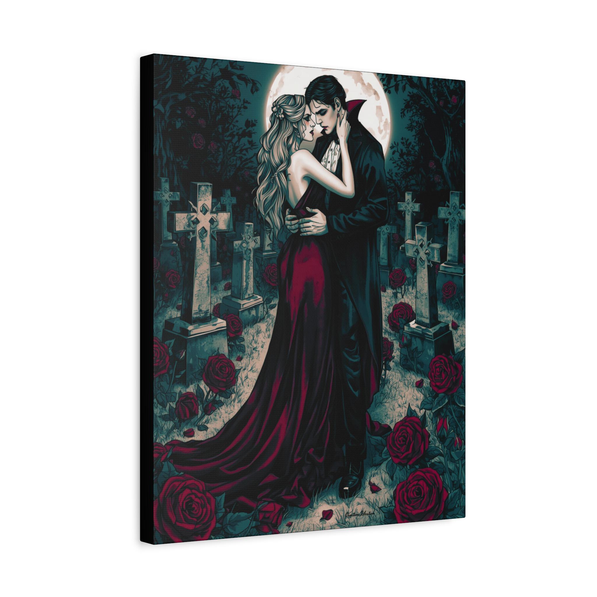 Gothic Vampire Couple Canvas Art: Romantic Dark Fantasy Wall Decor