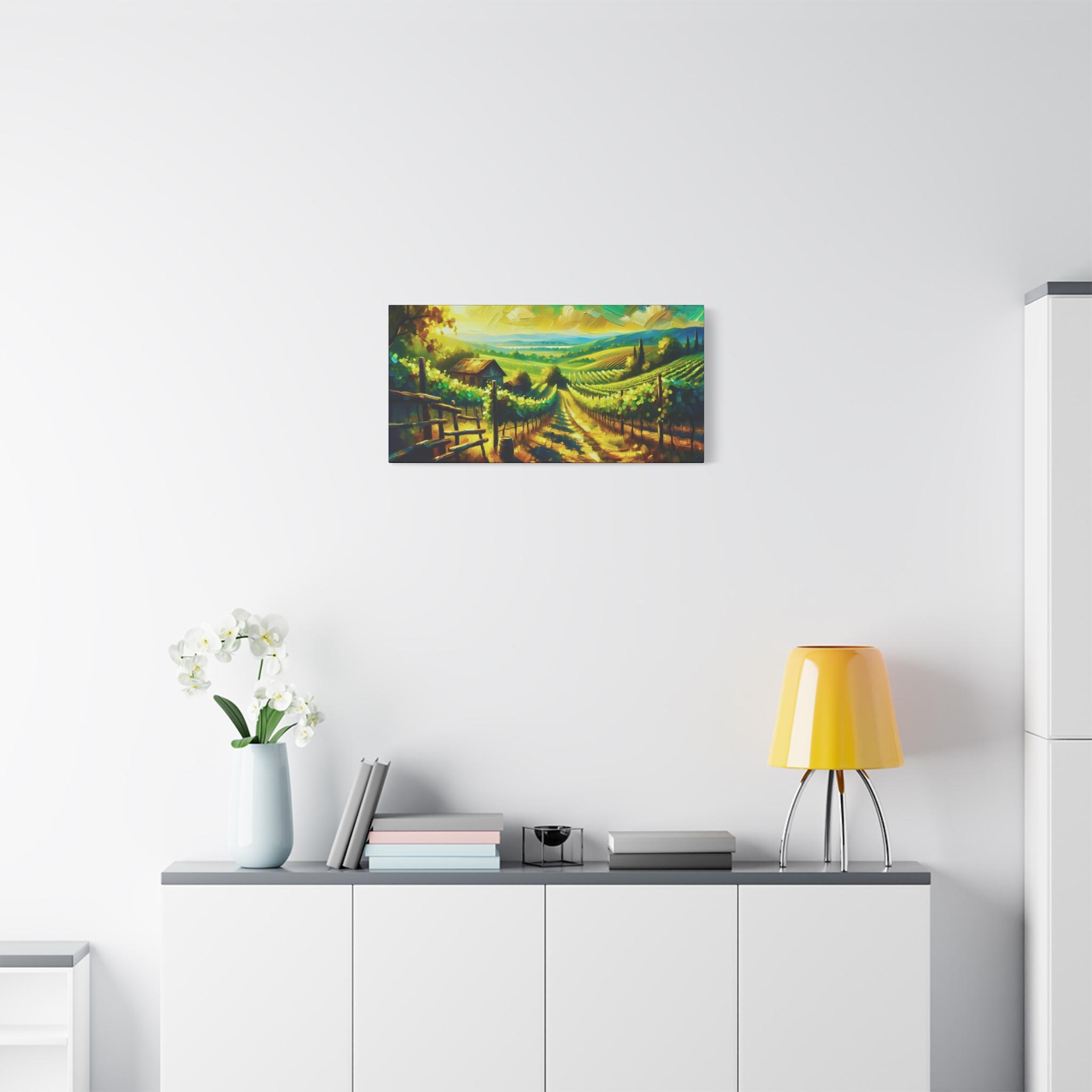 Vineyard Landscape Canvas Art: Italy Harvest Glow, Rustic Home Decor (30x15)