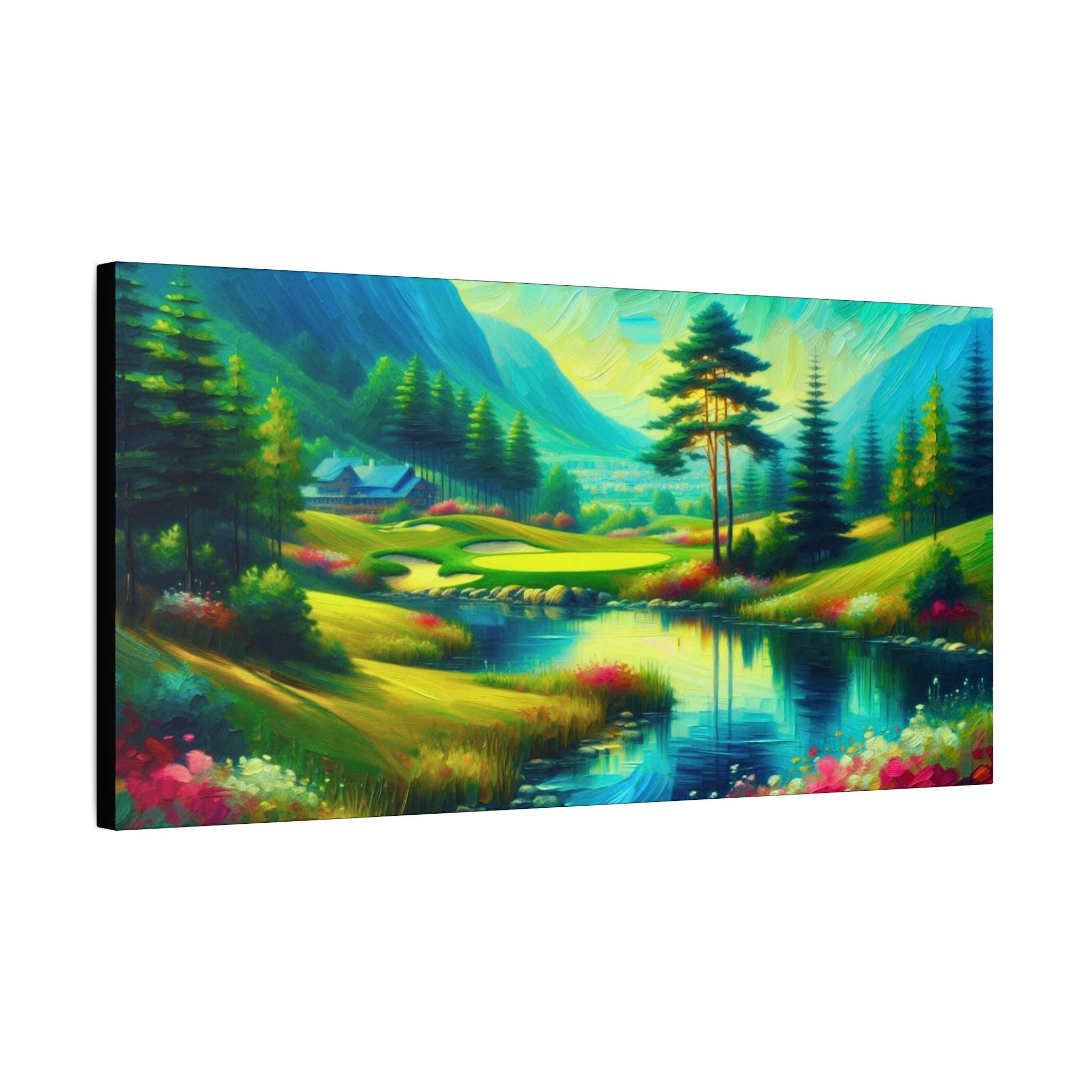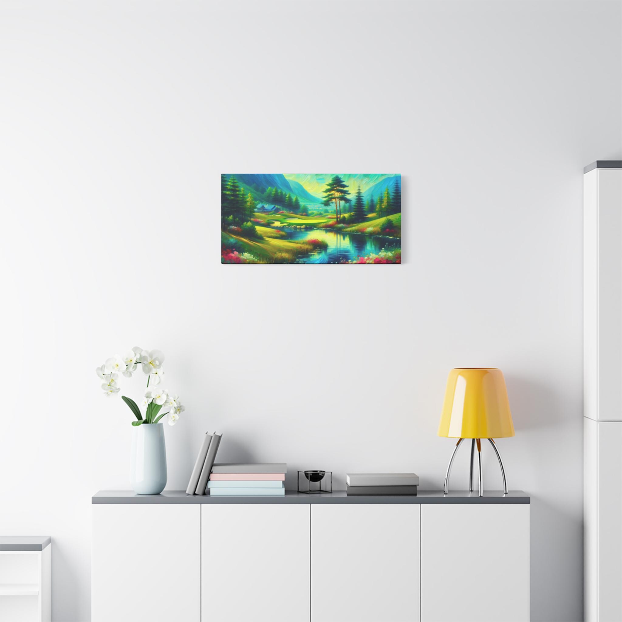 Golf Course Canvas: Scenic Nature Painting, Colorful Wall Art