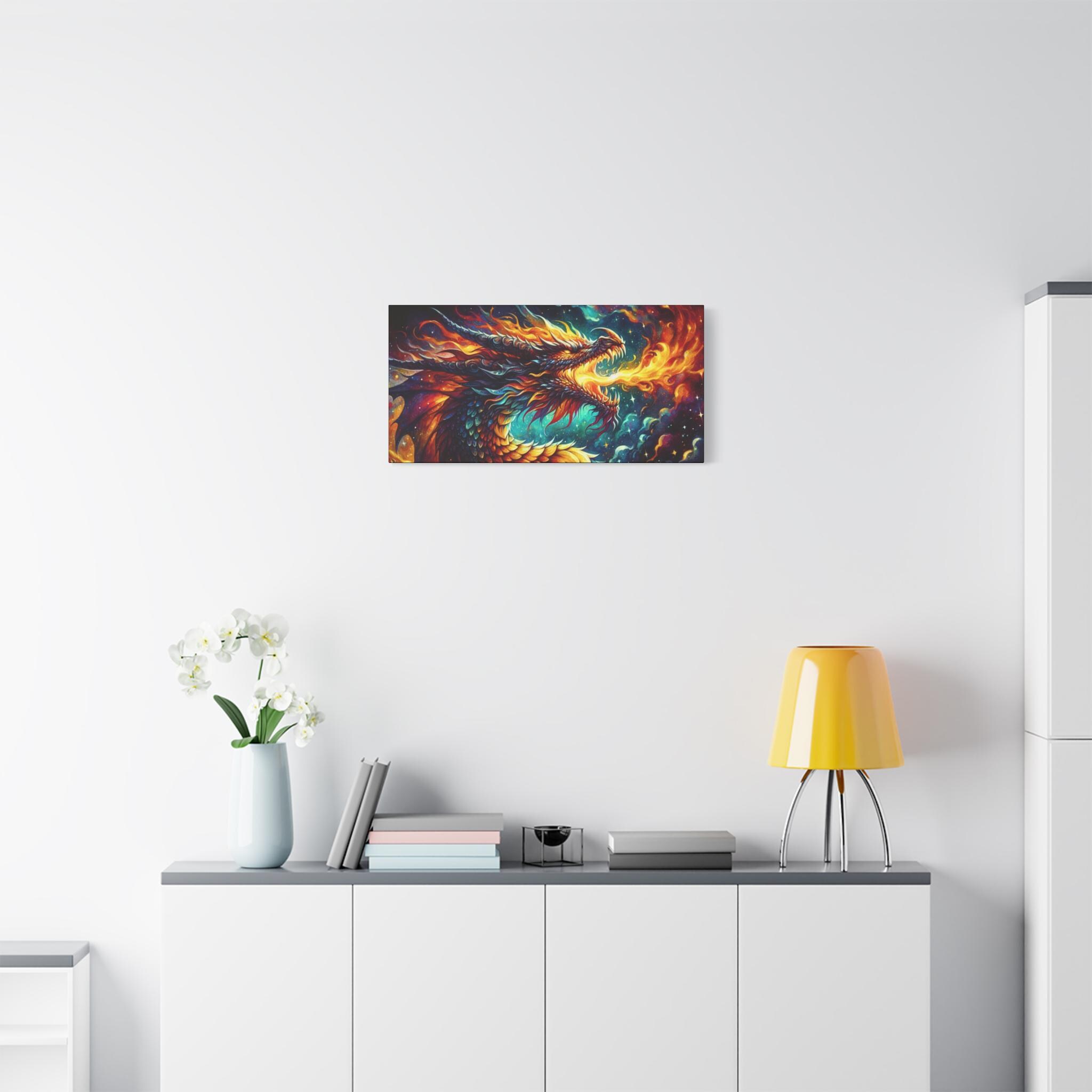 Starstew Dragon Canvas Art: Fantasy Home Decor, Dragon Lover Gift (30x15)