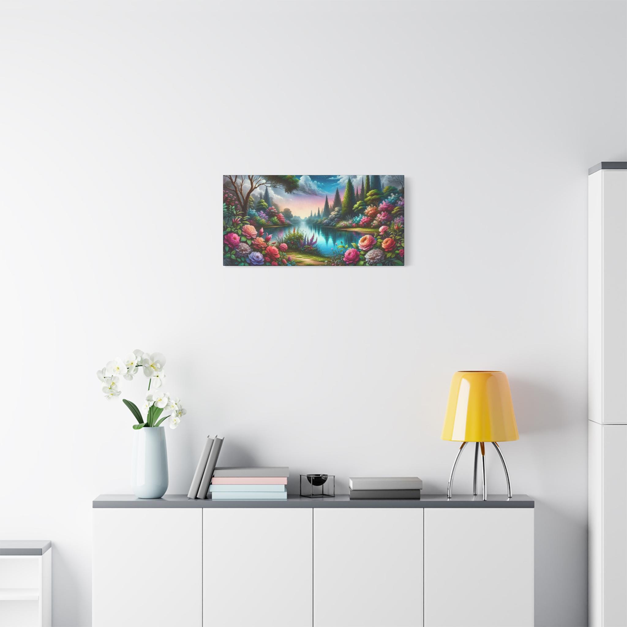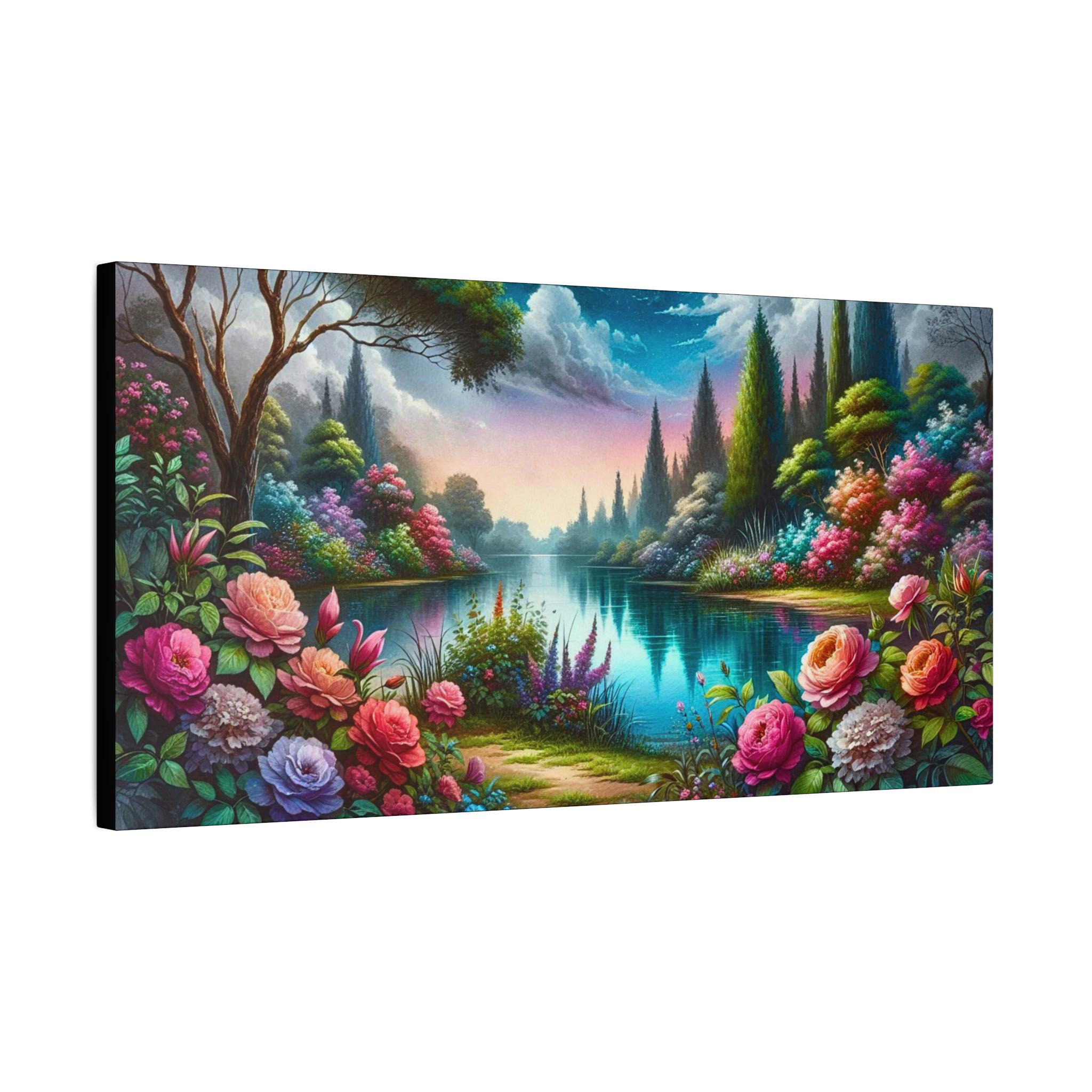 Transform your space with this stunning matte canvas that captures the serene beauty of a tranquil lakeside landscape. With vibrant colors and intricate details, this canvas creates a calming atmosphere that inspires relaxation and peace in any room. Perfect for living rooms, bedrooms, or even office spaces, it enhances your home decor while expressing your love for nature. This product is ideal for art enthusiasts, nature lovers, or anyone looking to add a touch of elegance to their home. It's a great gift for occasions such as housewarmings, birthdays, and holidays, especially during the spring and summer seasons when floral themes resonate the most.