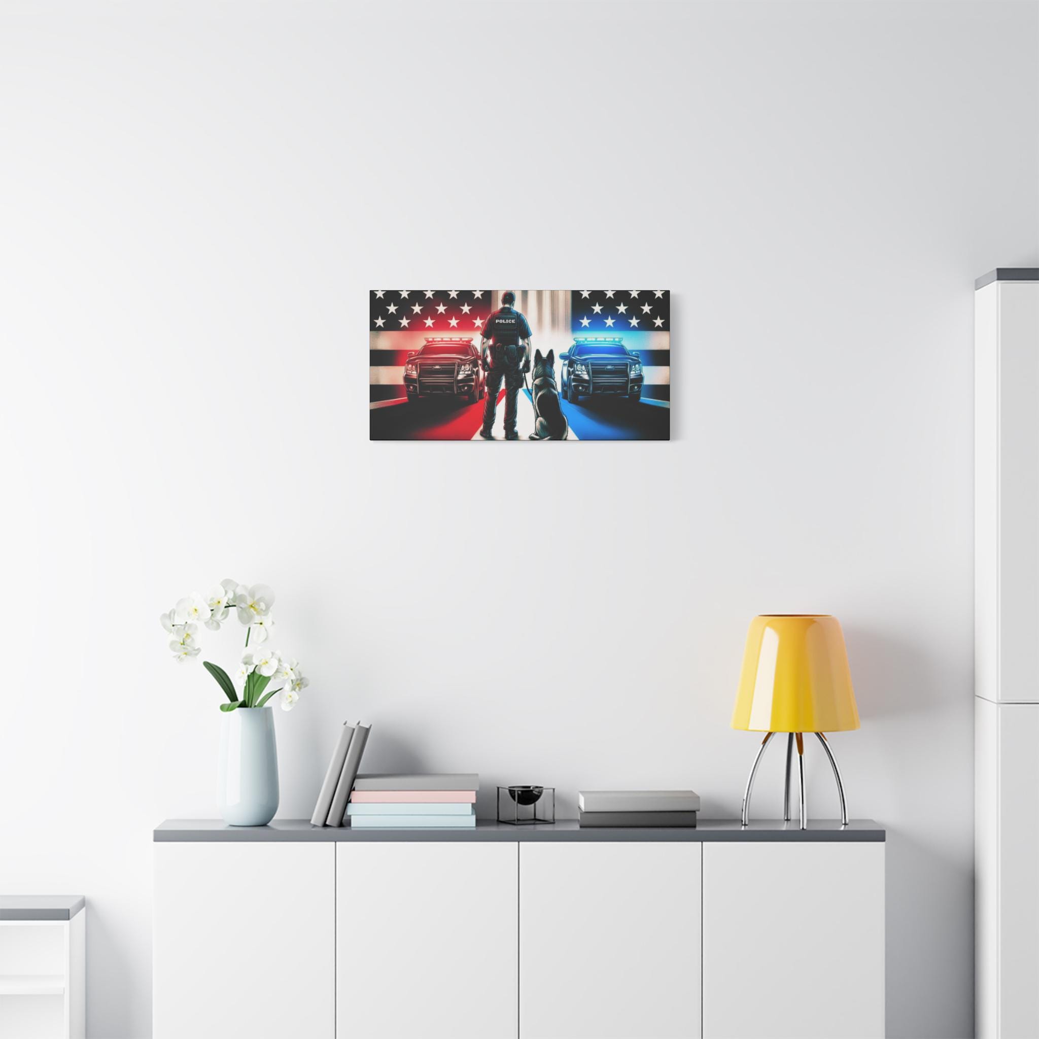 Patriotic Police Dog Canvas Art: Thin Blue Line USA Flag Tribute (30x15)